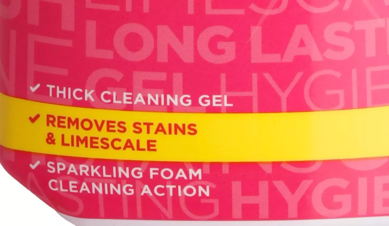 - El gel limpiador espeso se adhiere a la superficie del inodoro y elimina el 99,9 % de las bacterias.