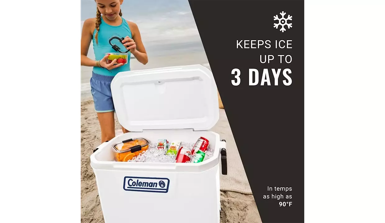 - Tapa y cuerpo totalmente aislado, mantienen el hielo hasta por 3 días en temperaturas de hasta 90°F.