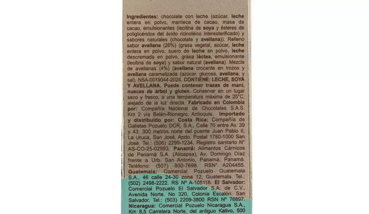 - Contiene: leche, soya y avellana.