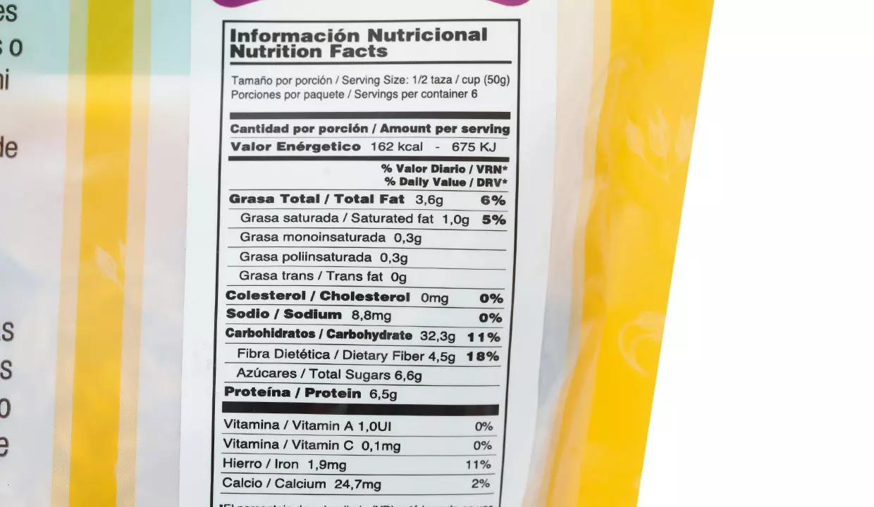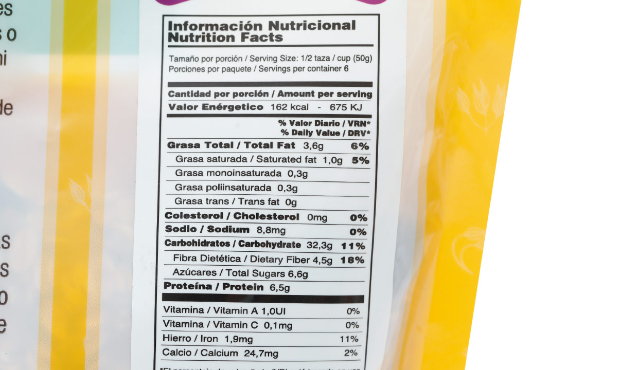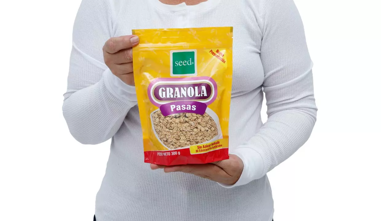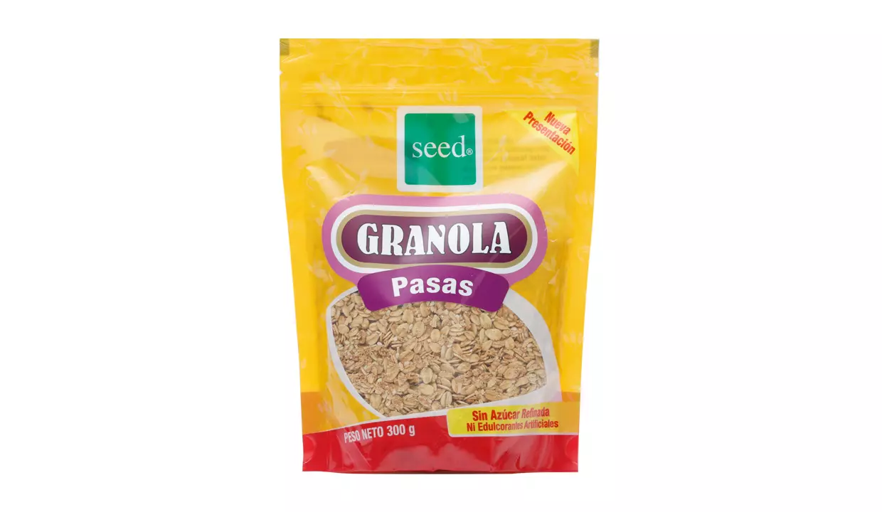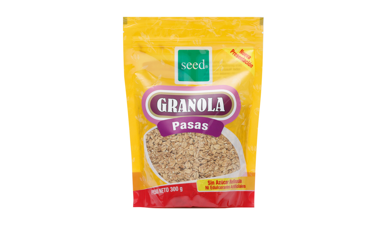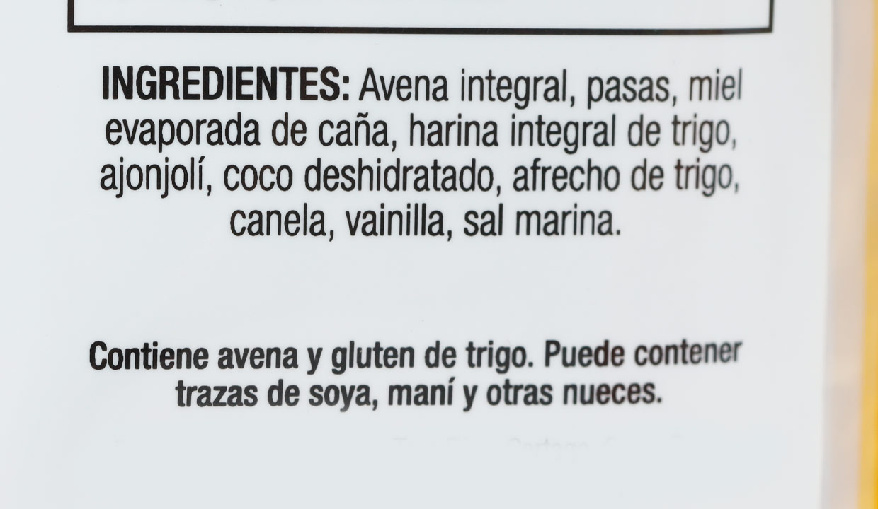 - Avena integral, pasas, miel evaporada de caña, harina integral detrigo, ajonjolí, coco deshidratado, afrecho de trigo, canela, vainilla y sal marina.