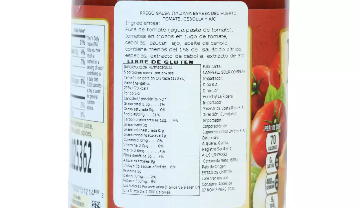 - Puré de tomate, trozos y jugo, cebolla, azúcar, ajo, aceite de canola, sal, ácido cítrico, especias, extracto de cebolla y de ajo.