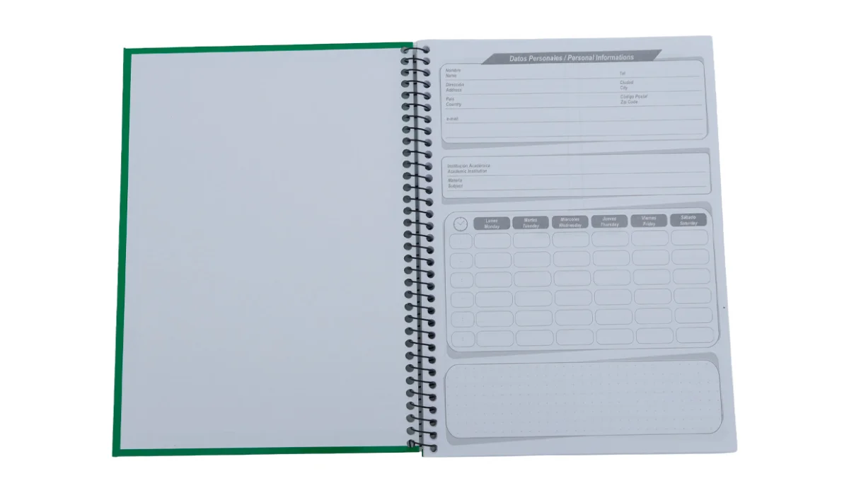 - Cuaderno resorte tapa dura.