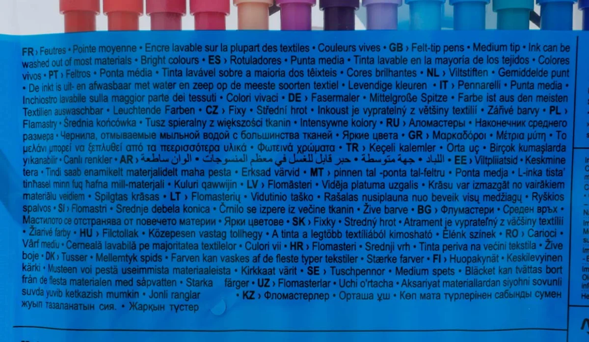 Tinta lavable en la mayoría de tejidos.