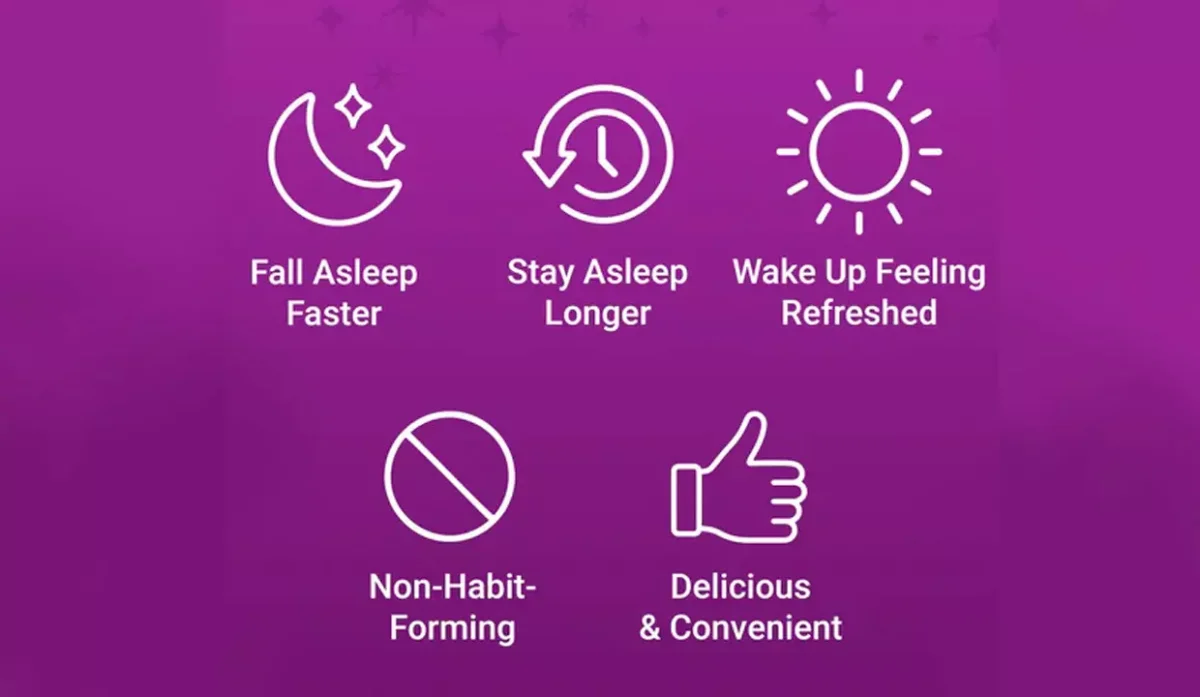 - Tomar de 2 a 3 gomitas, de 30 a 60 minutos antes de acostarse.