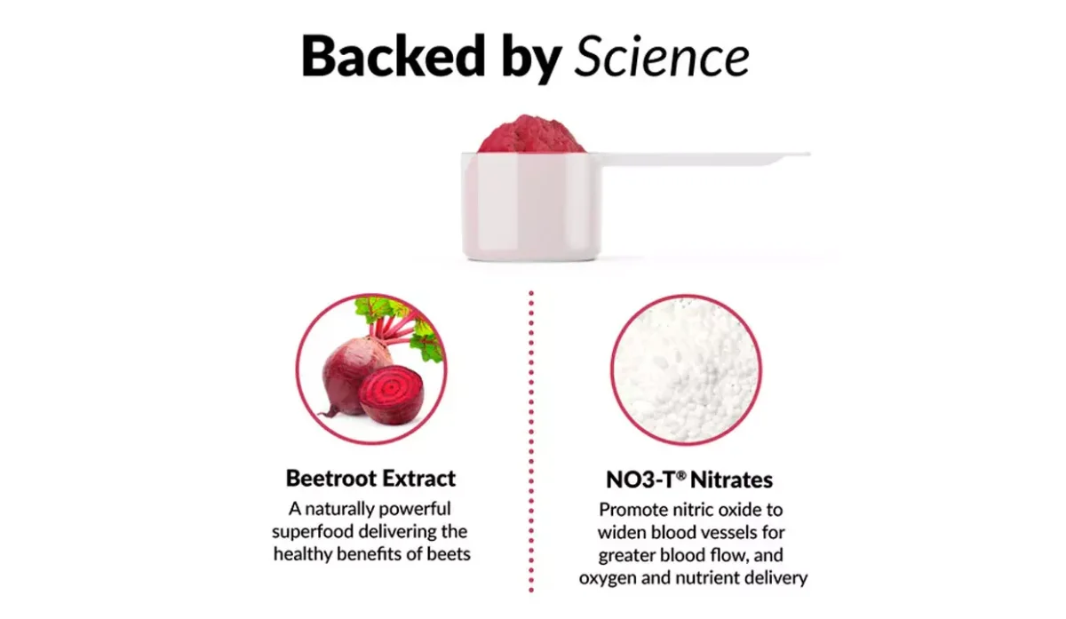 - Mezcla de remolacha con nitratos NO3-T, incluye polvo de remolacha (beta vulgaris) junto con betaina nitrato bajo la marca NO3-T, para aportar nitratos que favorecen la producción de óxido nítrico.