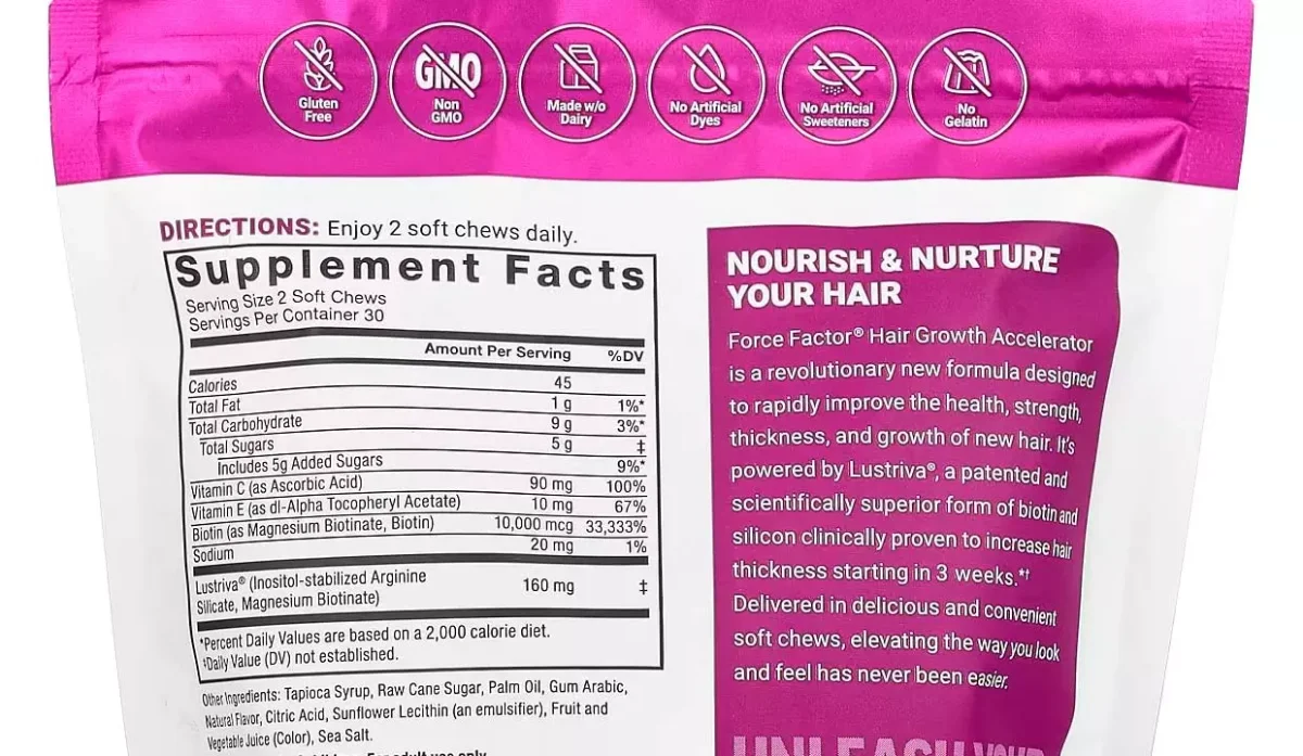 - Estos masticables están formulados con lustriva, una combinación patentada de biotina y silicio que ha demostrado clínicamente mejorar el grosor del cabello en tan solo 3 semanas.