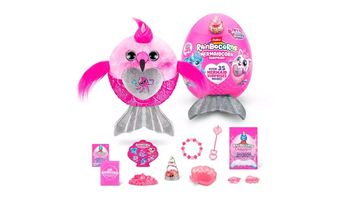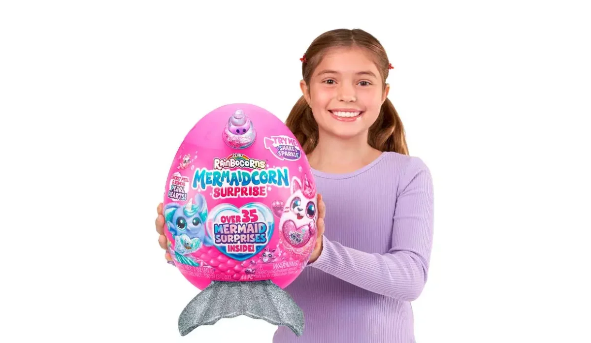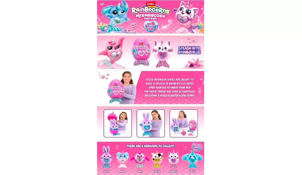 - Con brillante cola de sirena y un boo-boocorn oculto dentro de un cuerno de globo de agua.