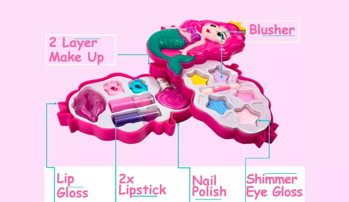 - 1 Paleta con brillo de labios, labial y esmalte de uñas.