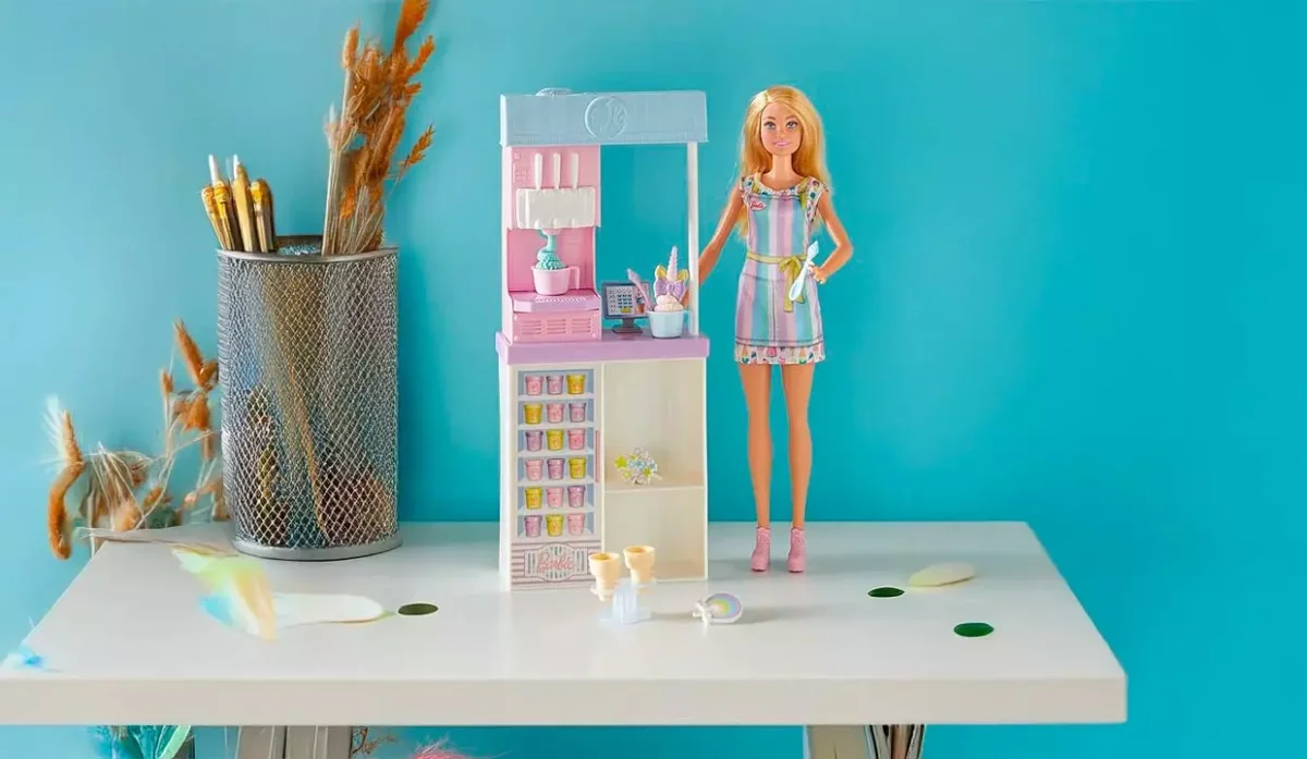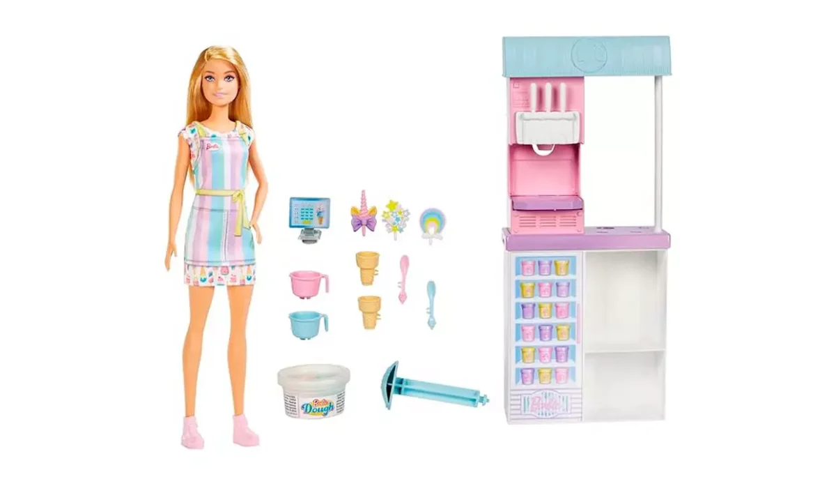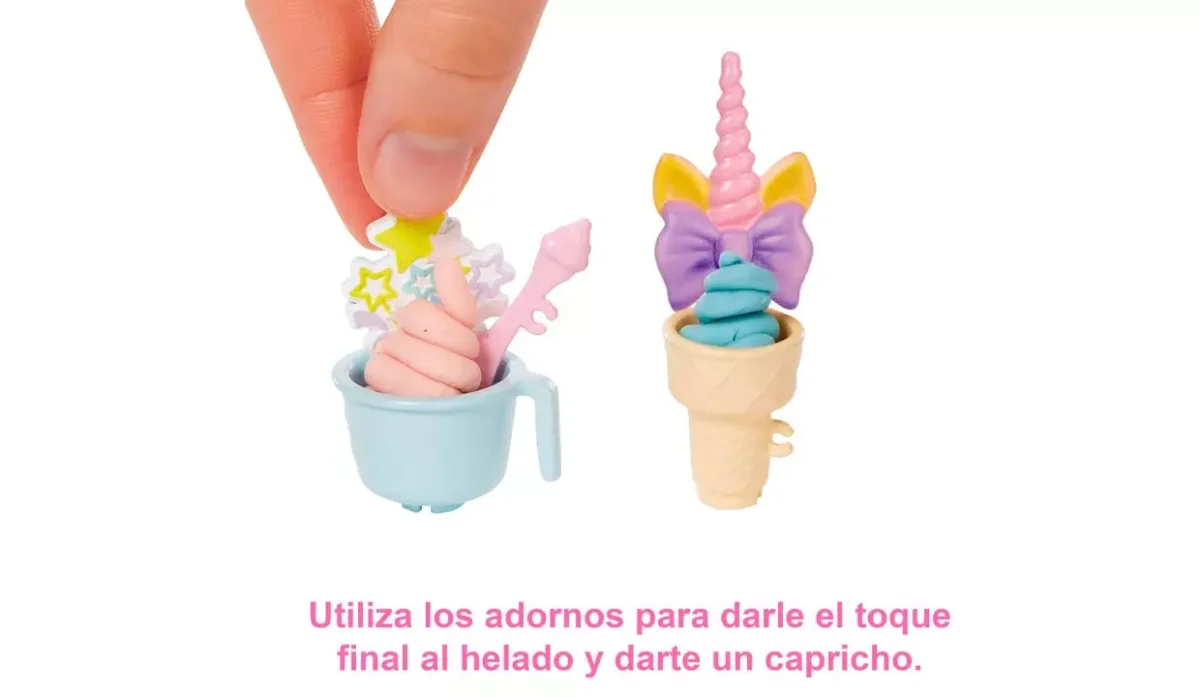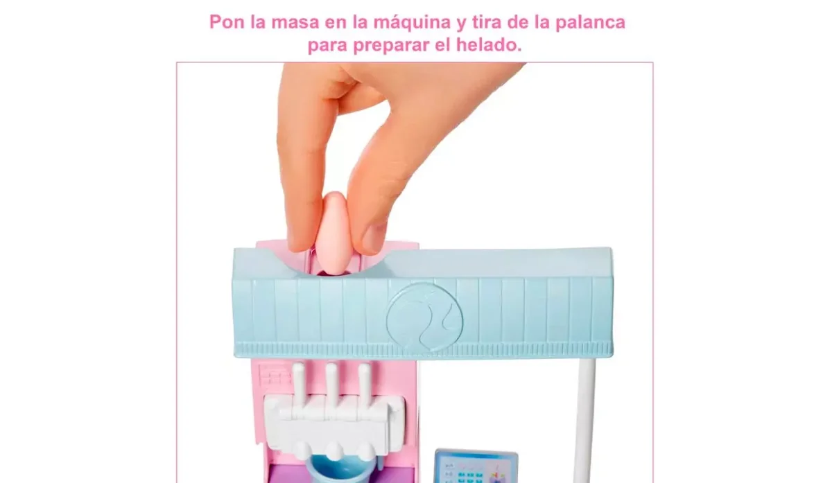 - Las niñas pueden usar dos tipos de masa (rosa o azul) y colocarla en la máquina para hacer helados, tirar de la palanca y ver cómo sale el 'helado' de una manera realista y divertida.
