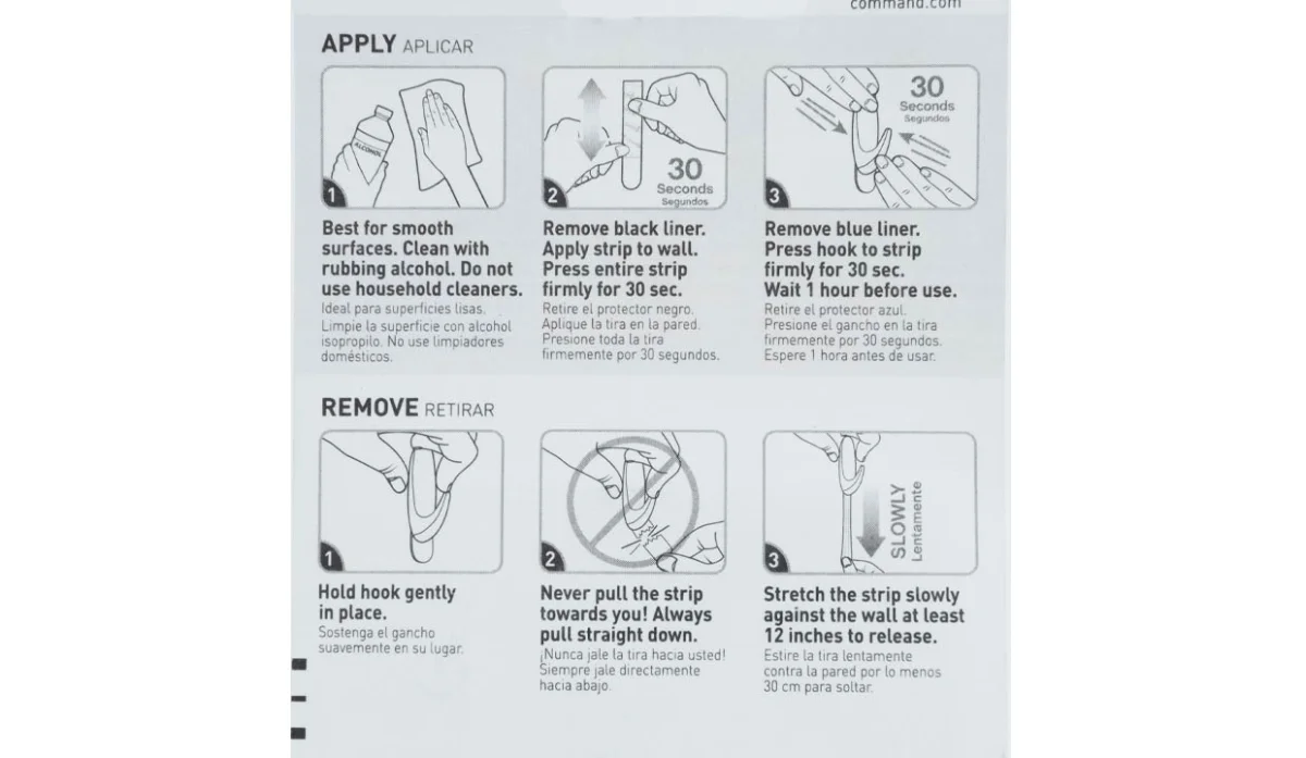 - Se sujetan firmemente a una variedad de superficies, incluyendo pintura, madera, azulejo y más.