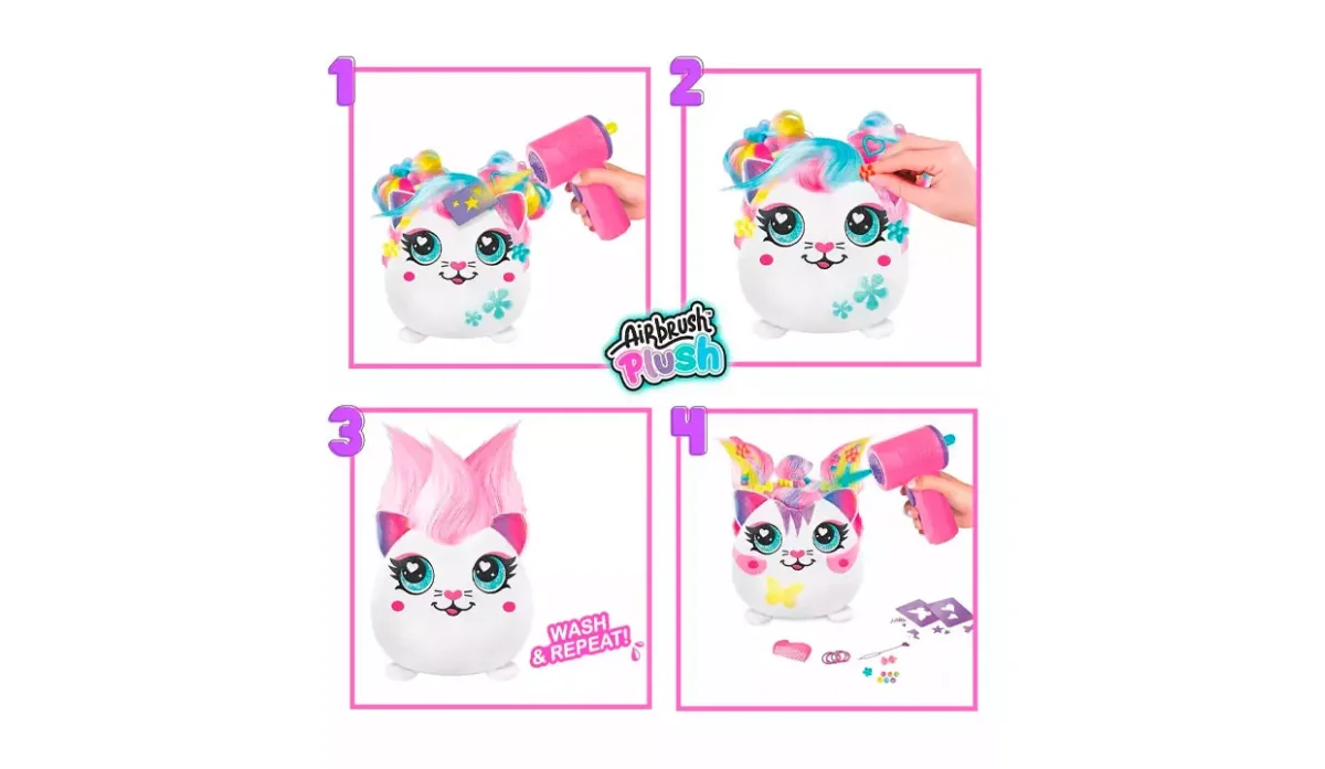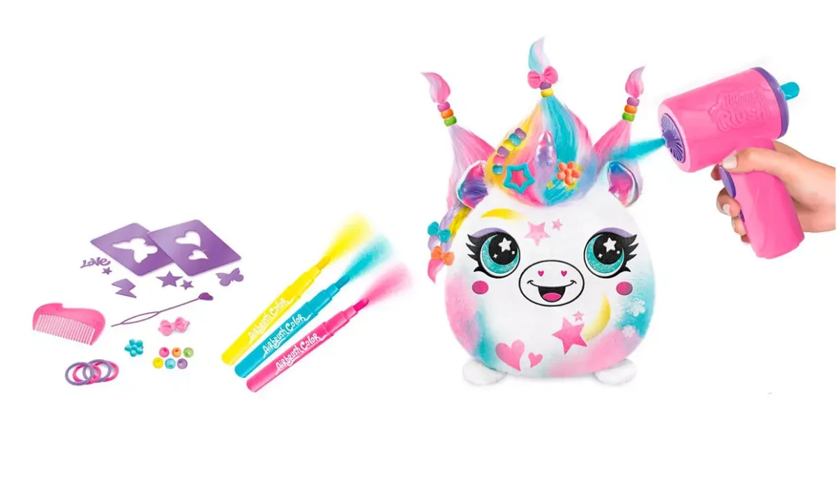 - Con el aerógrafo electrónico con forma de secador, los niños podrán colorear y peinarlo con los accesorios incluidos.