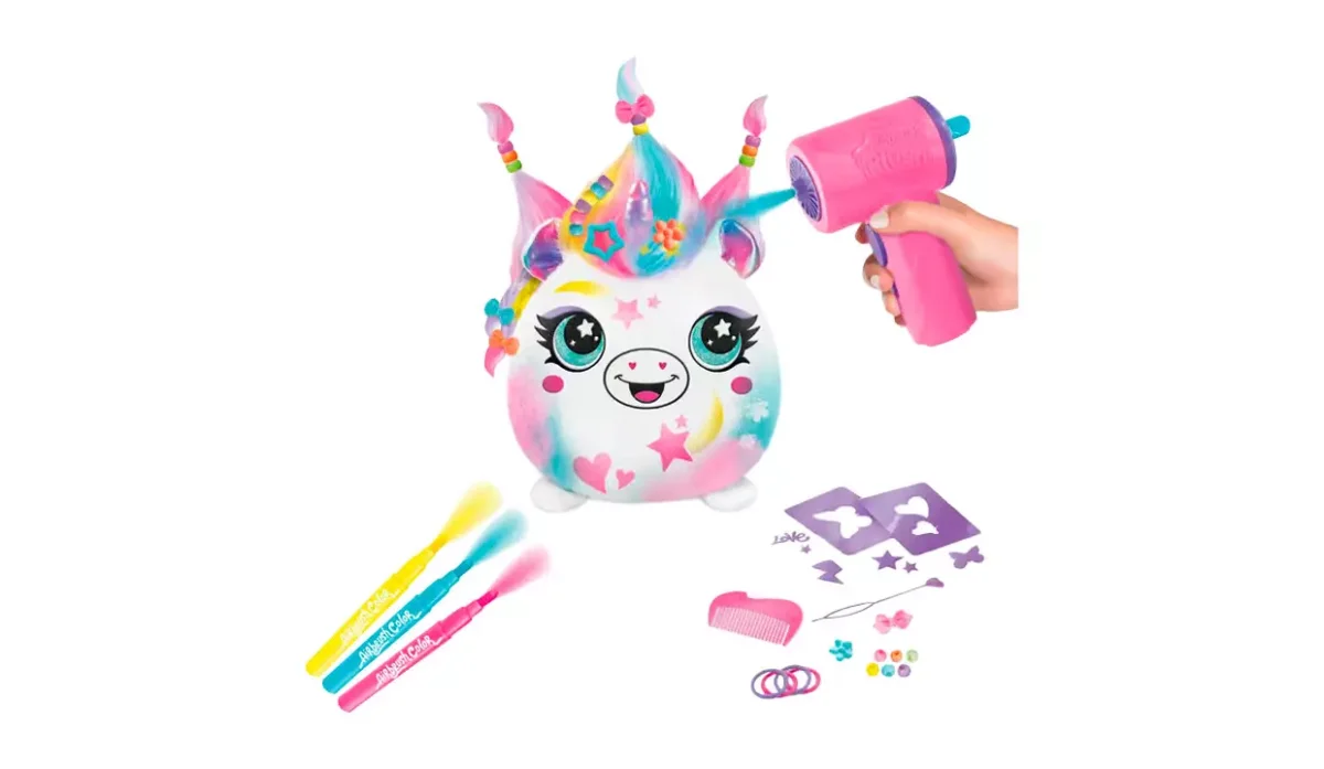 - Con el aerógrafo electrónico con forma de secador, los niños podrán colorear y peinarlo con los accesorios incluidos.