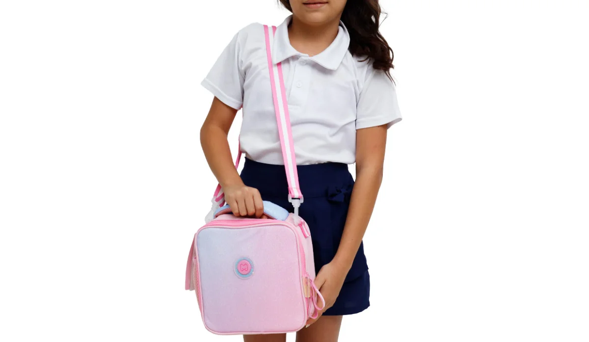 - La abertura en ángulo permite que la lonchera quede plana para usarse como bandeja.