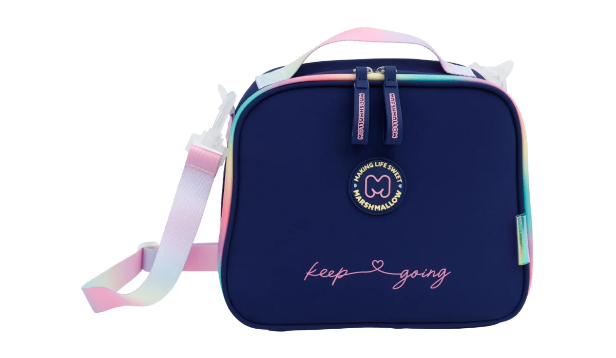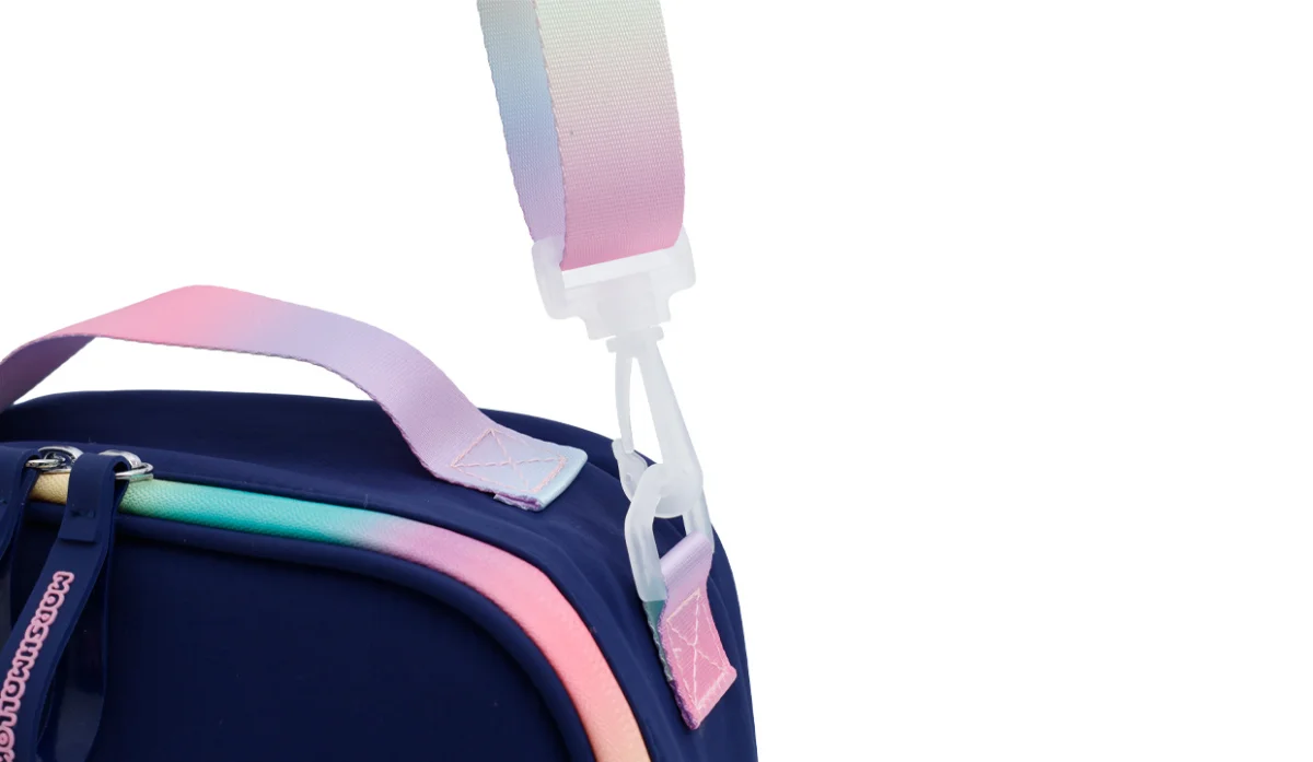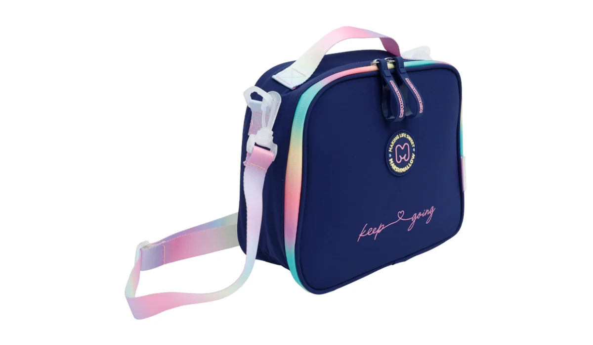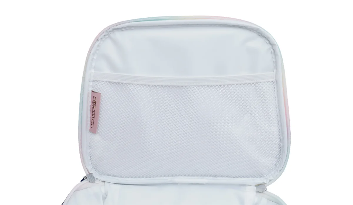 - La abertura en ángulo permite que la lonchera quede plana para usarse como bandeja.