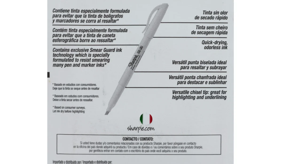 - Tinta especialmente formulada para evitar que la tinta de lapiceros se corra al resaltar.
