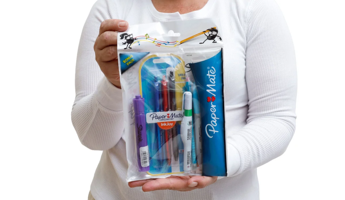 - 3 lapiceros kilométrico retráctil (rojo, negro y azul).