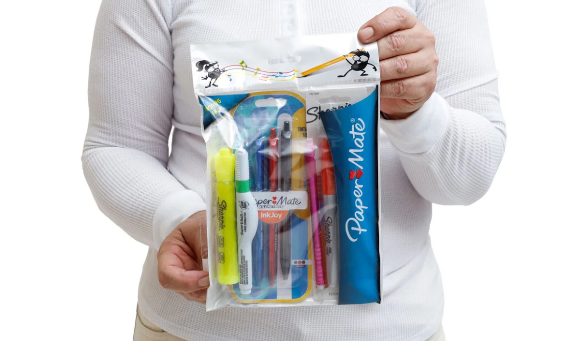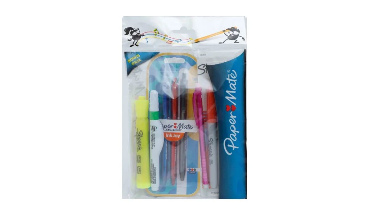 - 3 lapiceros kilométrico retráctil (rojo, negro y azul).