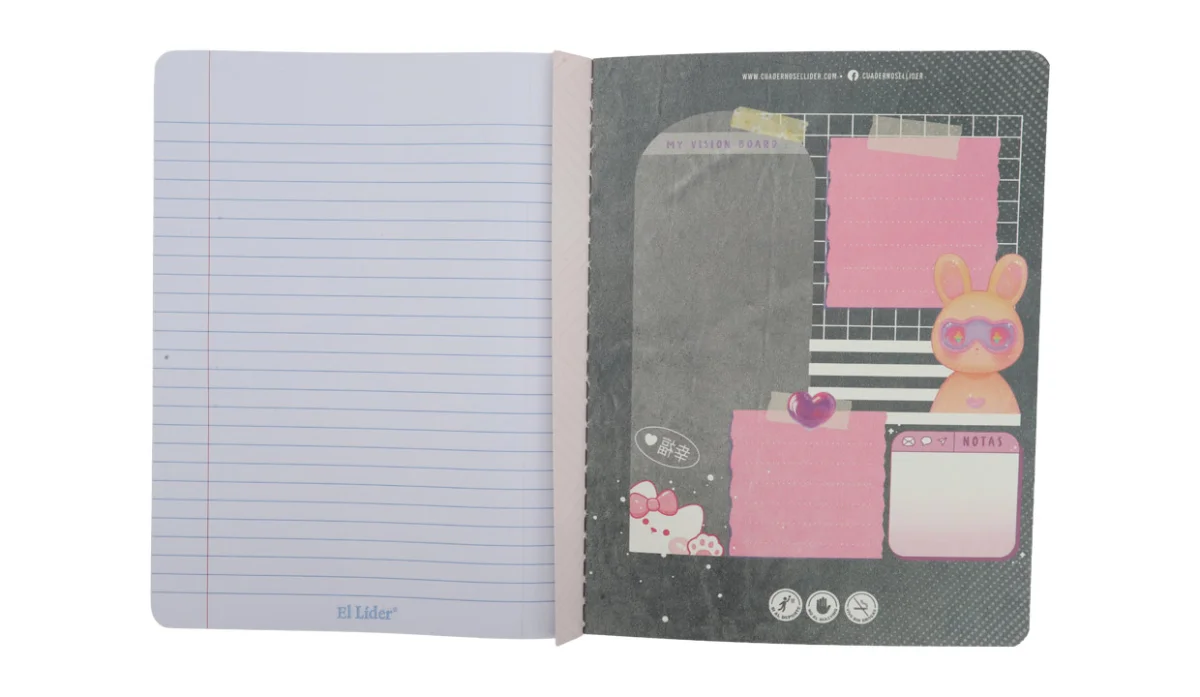 - Cuaderno cosido tapa flexible.