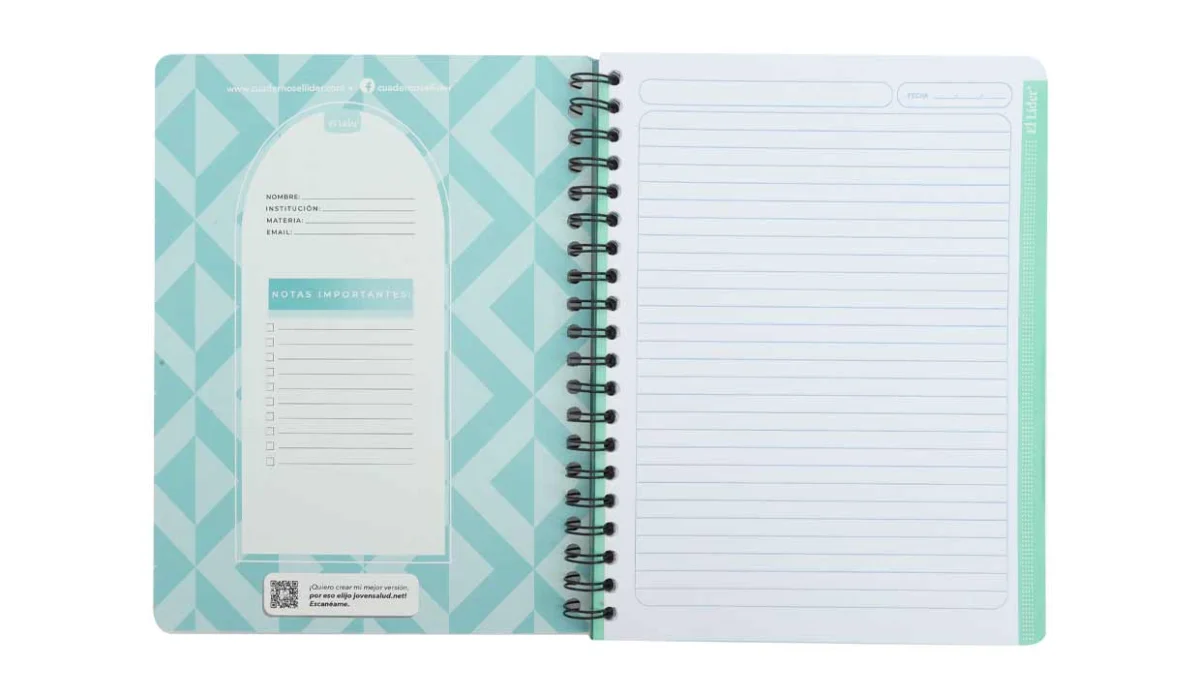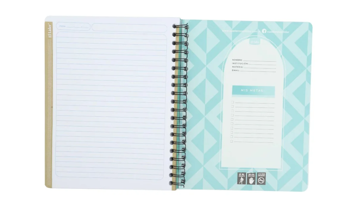- Cuaderno resorte tapa flexible.