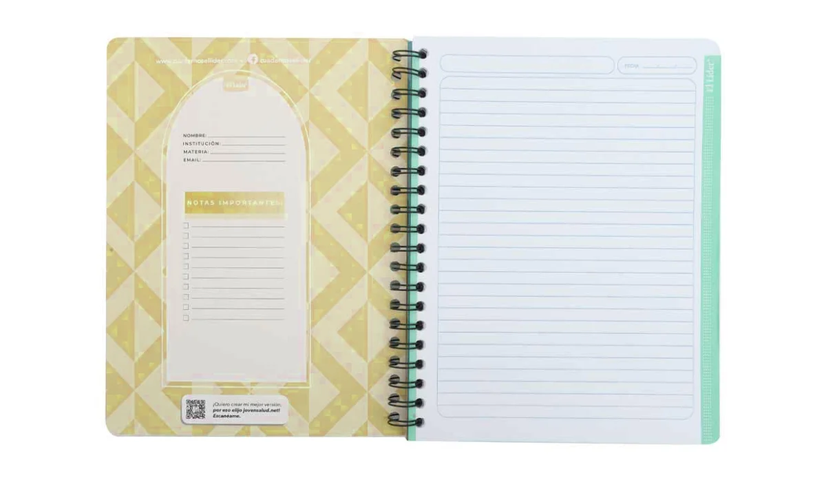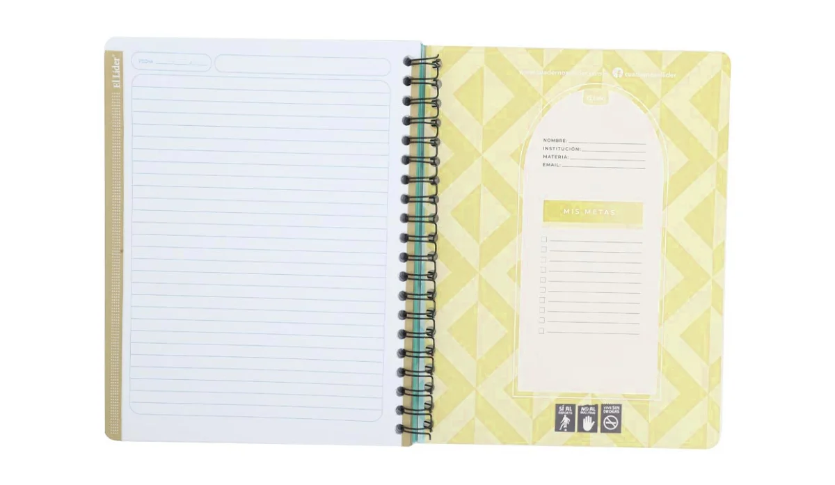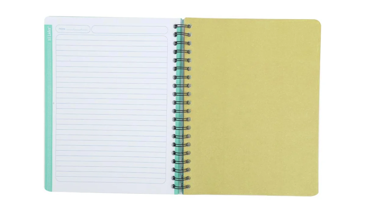 - Cuaderno resorte tapa flexible.