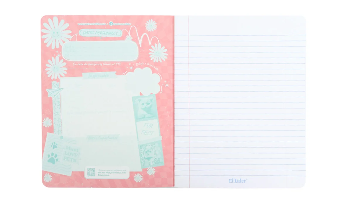 - Cuaderno cosido tapa flexible.