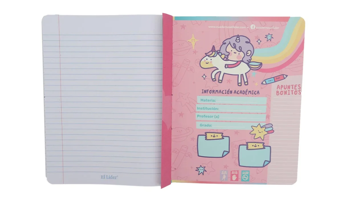 - Cuaderno cosido tapa flexible.