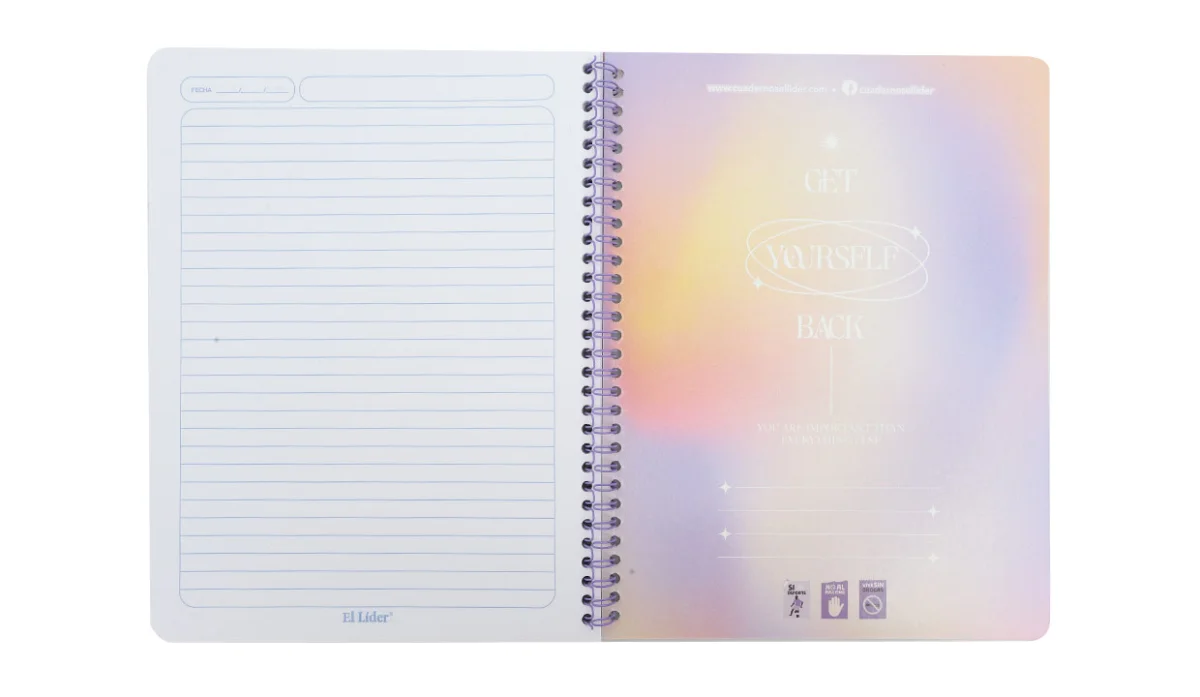 - Cuaderno resorte tapa flexible.