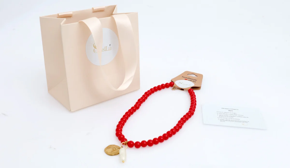 - Guaya, ágatas, cristales sintéticos, zirconias, muranos, perlas cultivadas, dijes latón con baño de oro y acero.