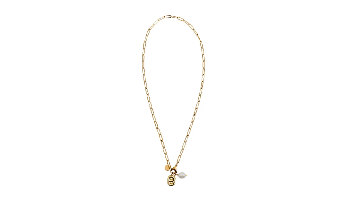 - Cadena de latón baño de oro 18, cadena de acero y dijes de latón baño de oro y acero.