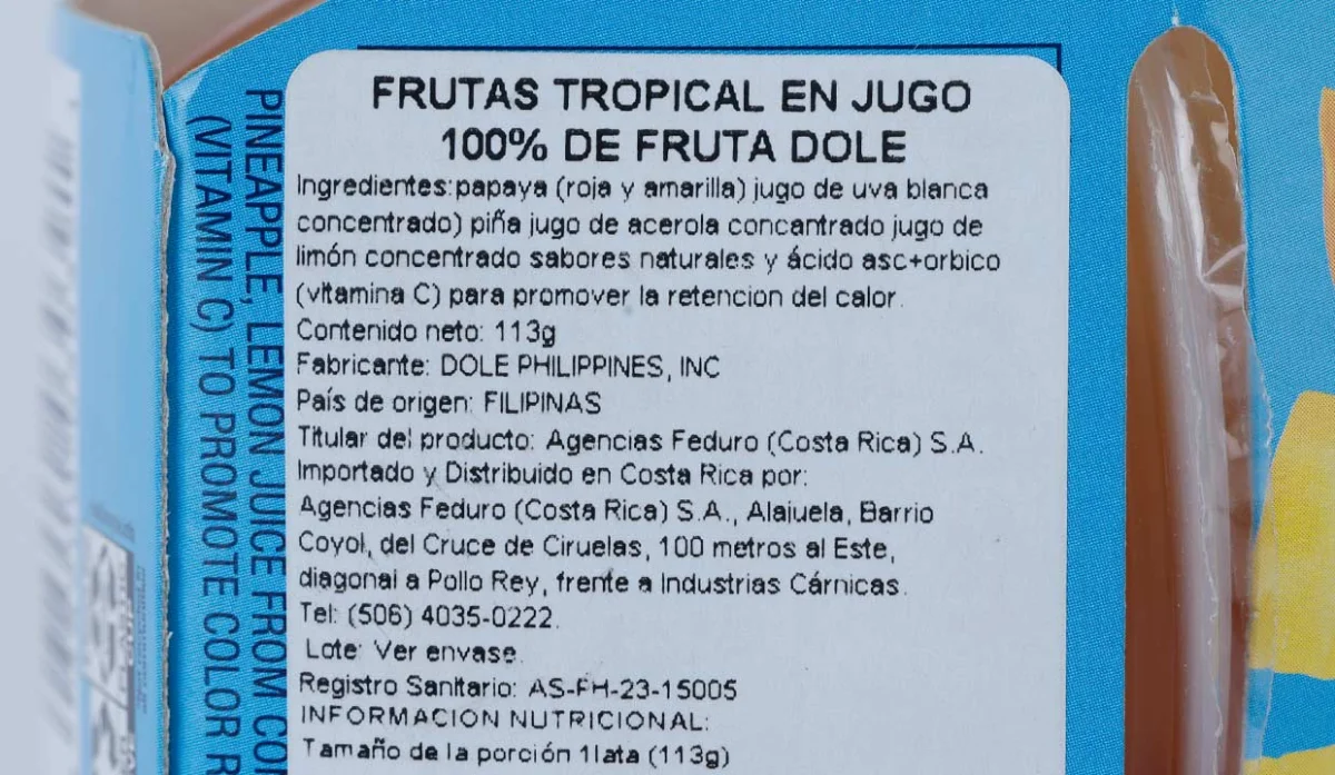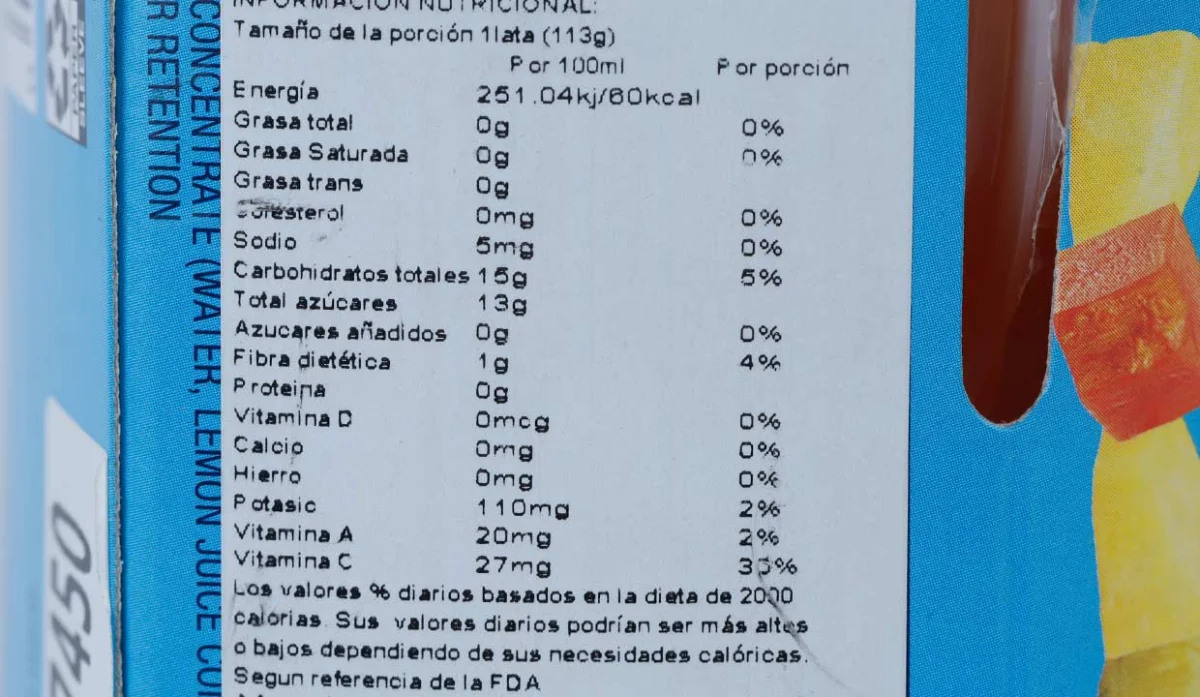 - Papaya (roja y amarilla), jugo de uva blanca (concentrado), jugo de acerola concentrado, jugo de limón concentrado, sabores naturales y ácido ascórbico, (vitamina C) para promover la retención del calor.