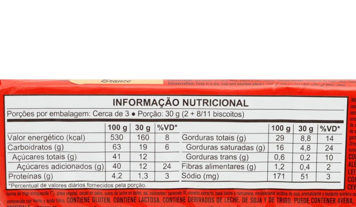 - Azúcar, harina de trigo enriquecida, grasa vegetal, cacao en polvo, sal, colorantes, caramelo IV, annato extracto, base bixina y curcumina, emulsionante, lecitina de soya, aromatizante y leudante químico, sodio, bicarbonato.