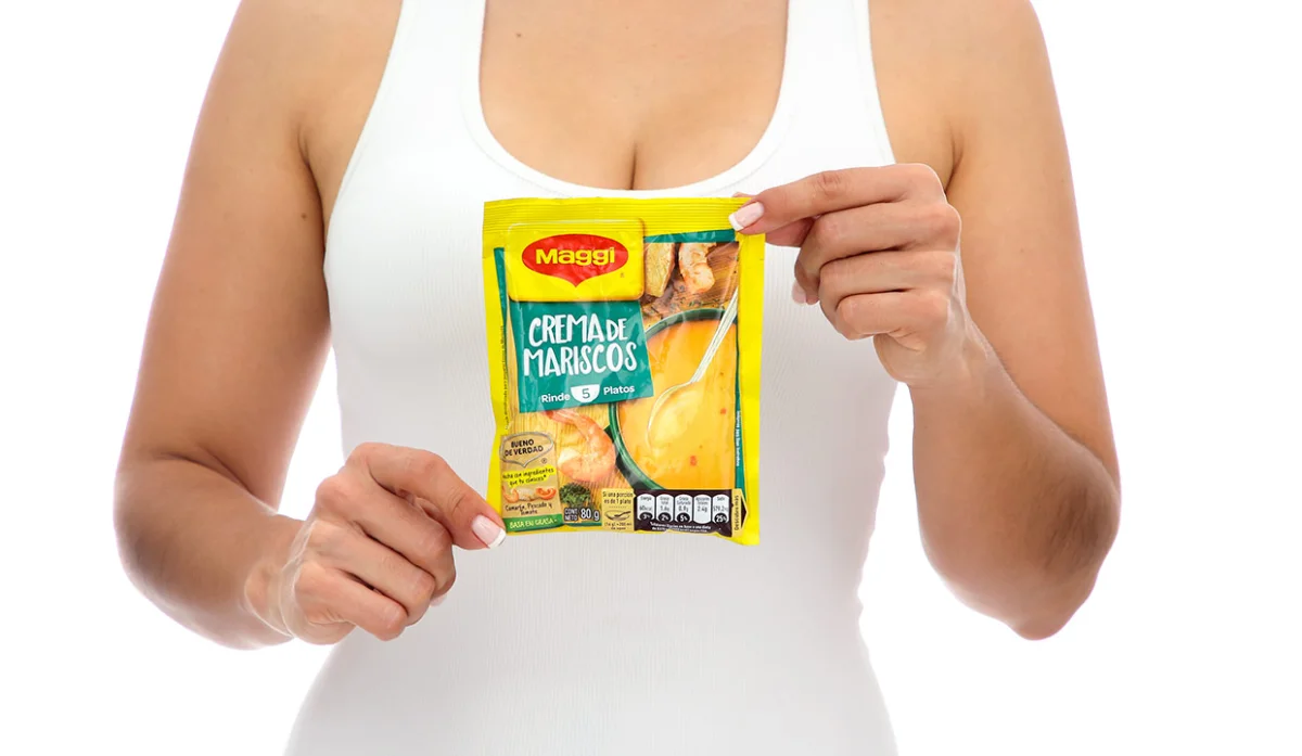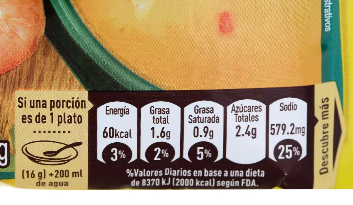 - Harina de trigo, almidón de maíz, azúcar, leche descremada, sal yodada, aceite vegetal, harina de camarón y pescado, cebolla, hierbas y especias.
