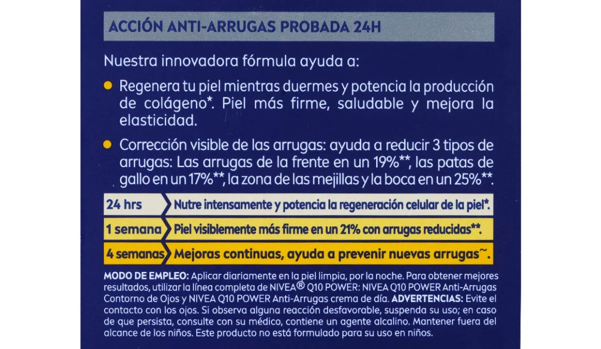 - Ayuda a reducir 3 tipos de arrugas: las de la frente en un 19%, las patas de gallo en un 17%, la zona de las mejillas y la boca en un 25%.