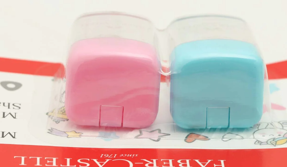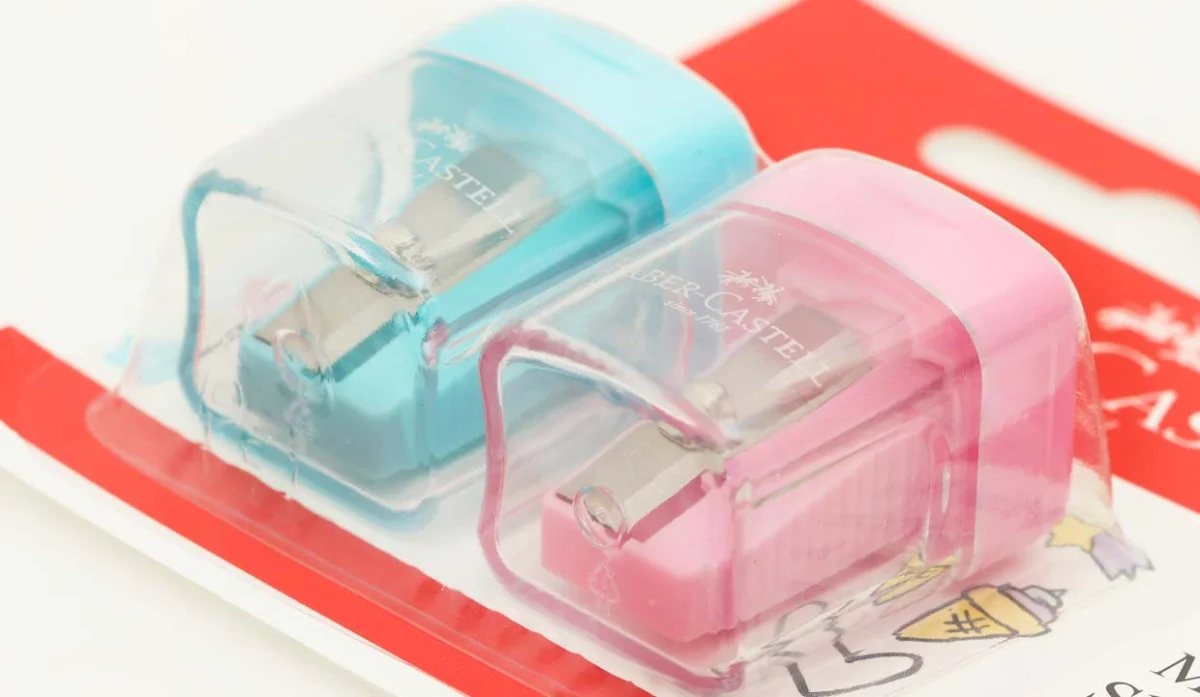 SET 2 SACAPUNTAS CON DEPOSITO ROSADO-TURQUESA FABER CASTEL