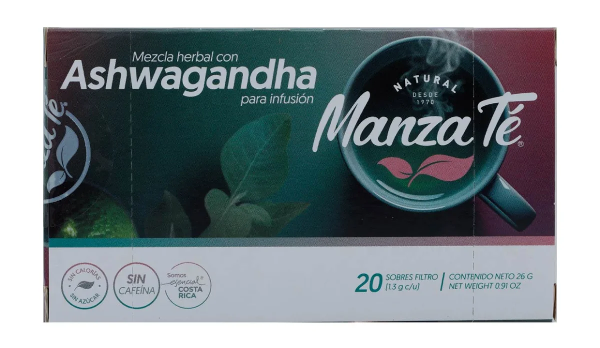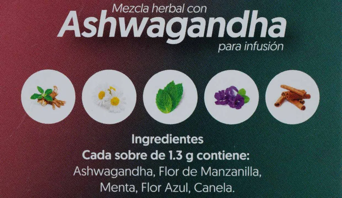 - Ashwagandha, flor de manzanilla, menta, flor azul y canela.
