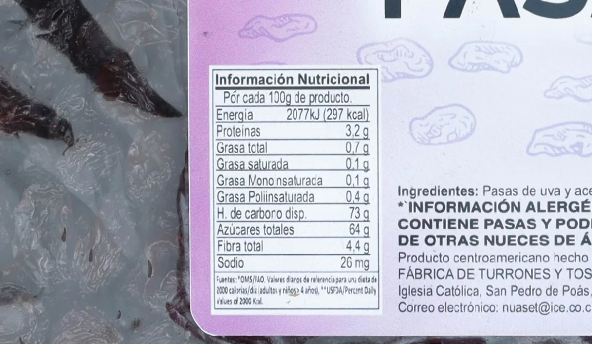 Pasas de uva y aceite vegetal.