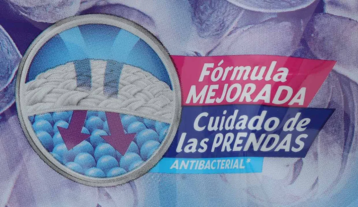 - Contiene agentes limpiadores que penetran profundamente en los tejidos, removiendo manchas difíciles, para una limpieza efectiva.