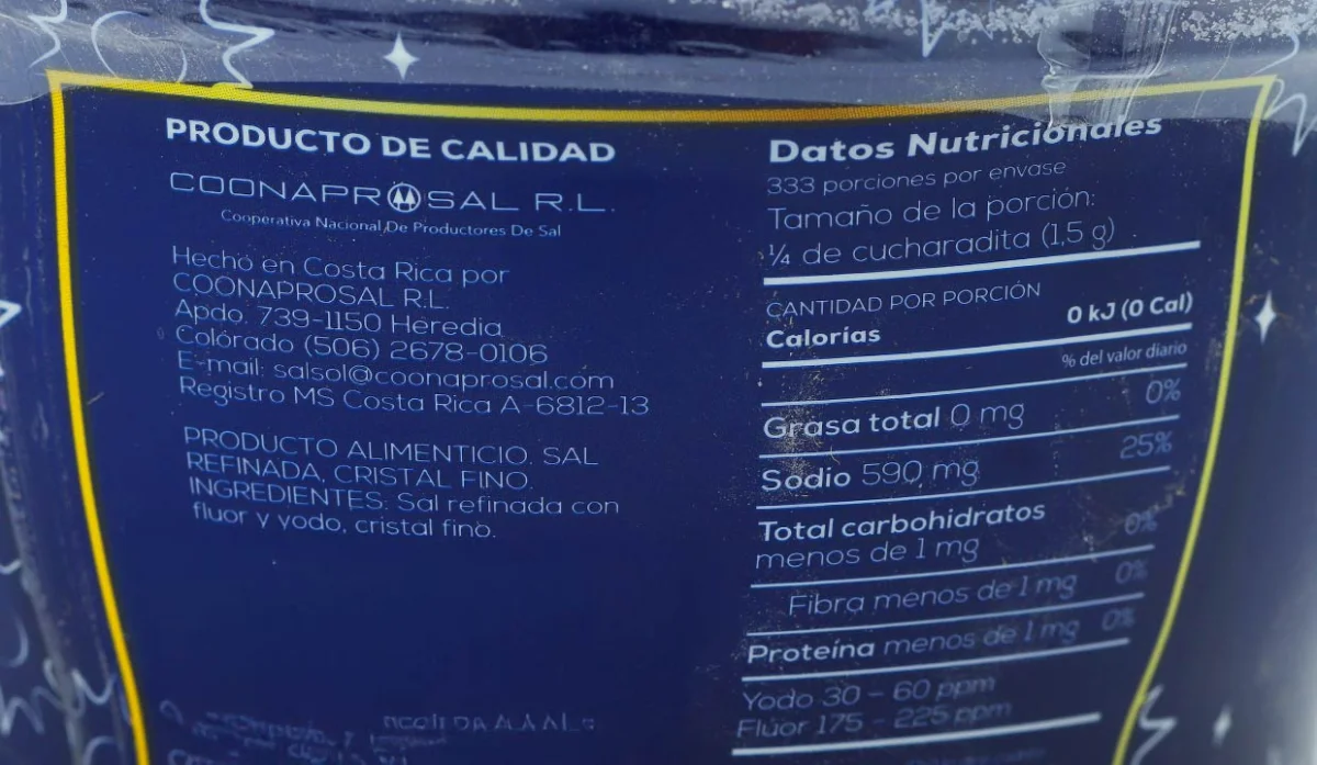 Sal refinada con fluor y yodo, cristal fino.