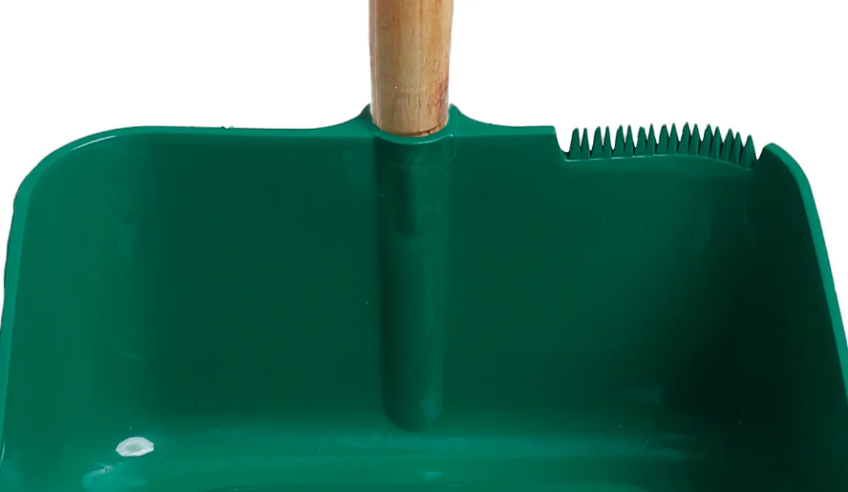 - Con borde dentada para limpiar las cerdas de la escoba.