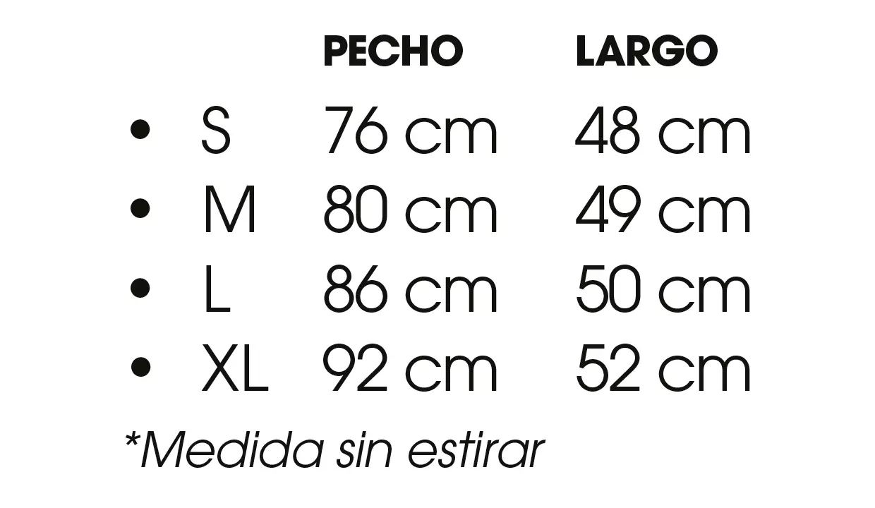 - Pecho 76 cm.