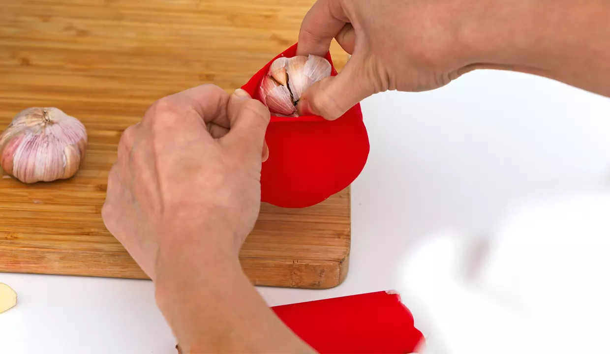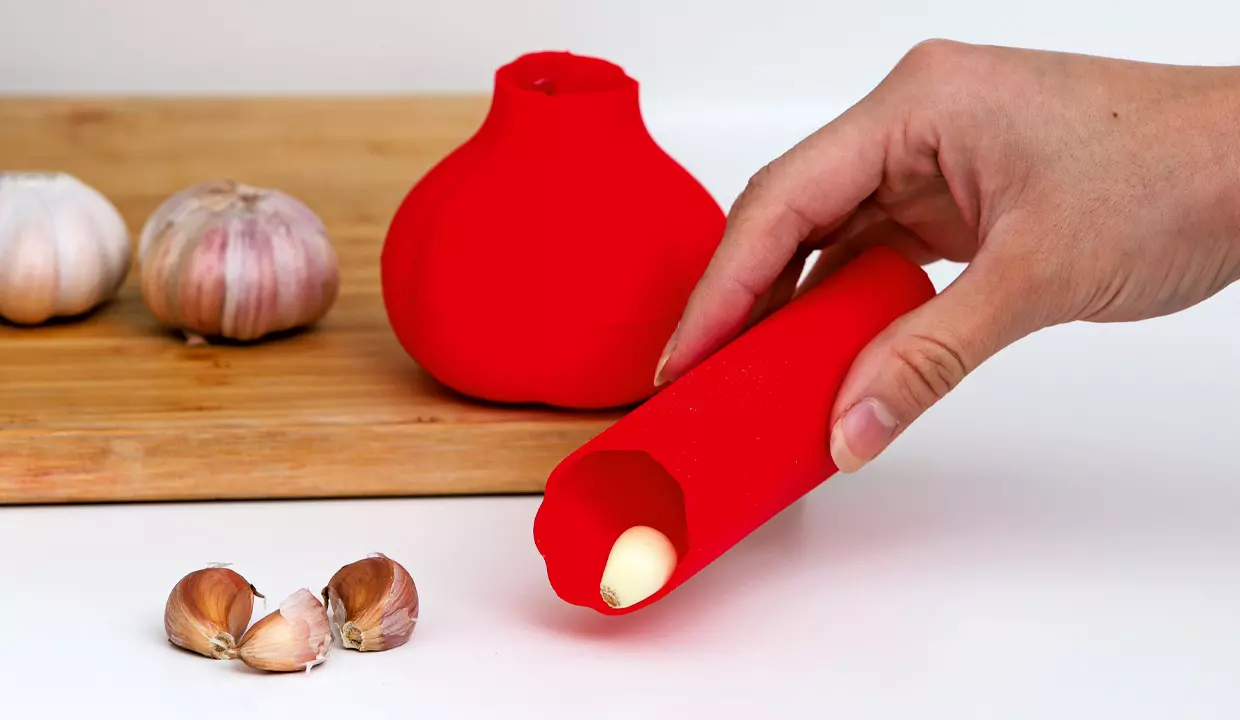 - El pelador redondo se puede utilizar como recipiente para almacenar ajos.