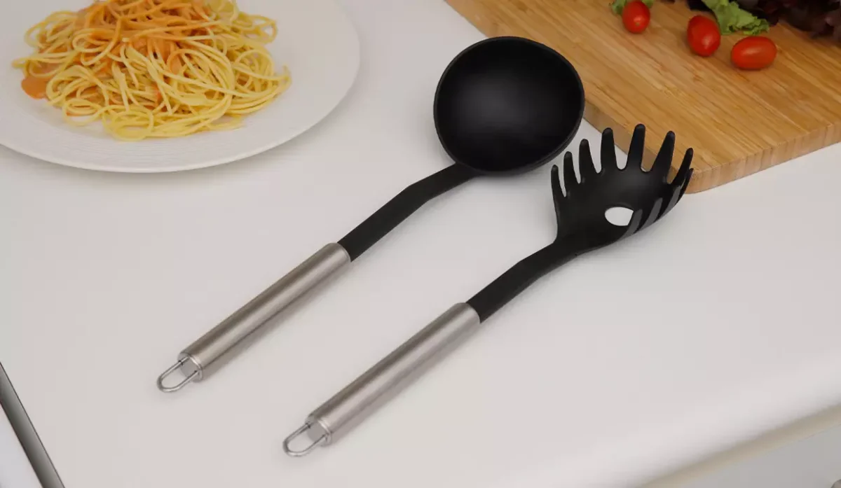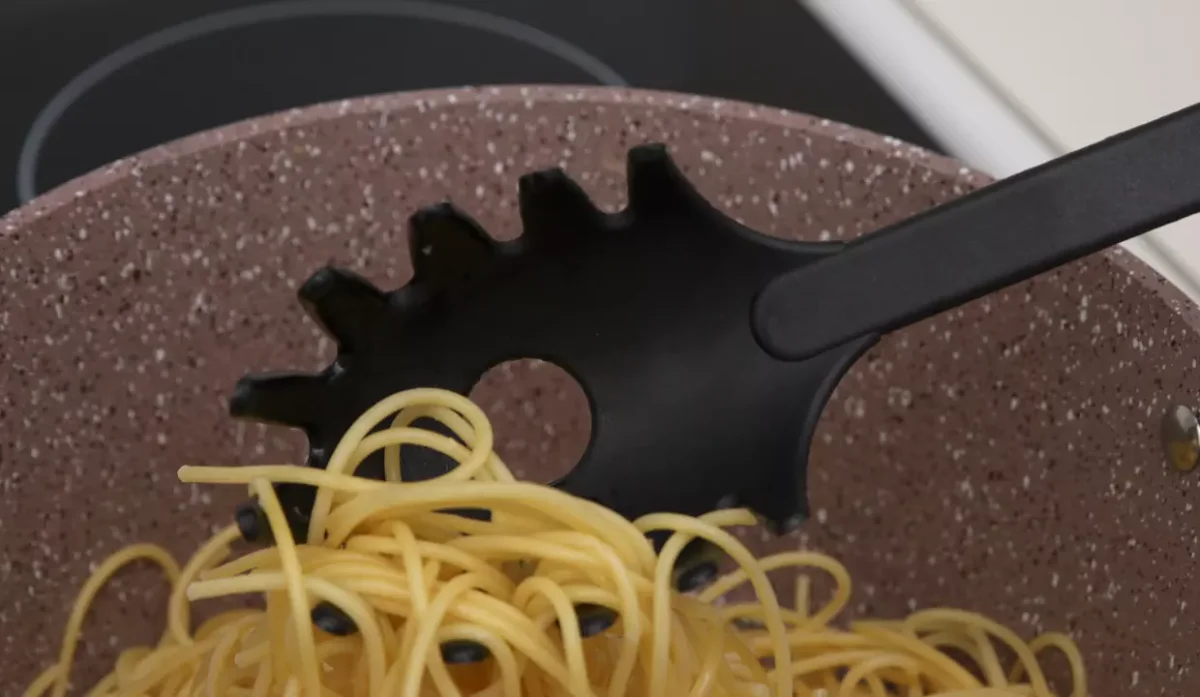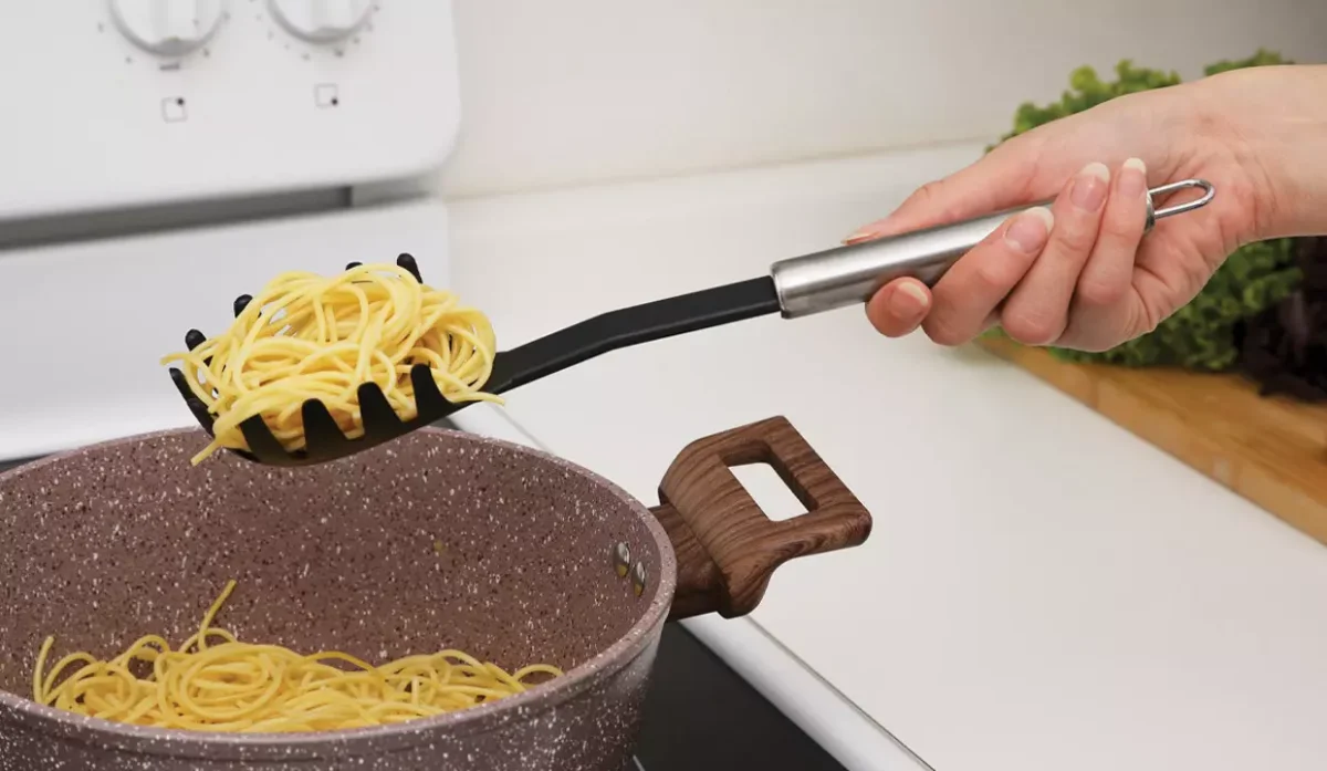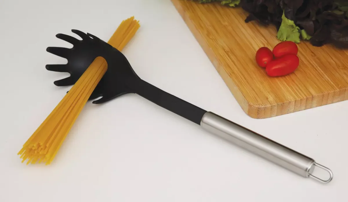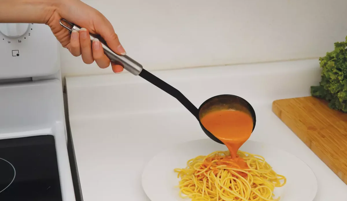 - El cucharón cuenta con orificio para medir una porción de pasta.