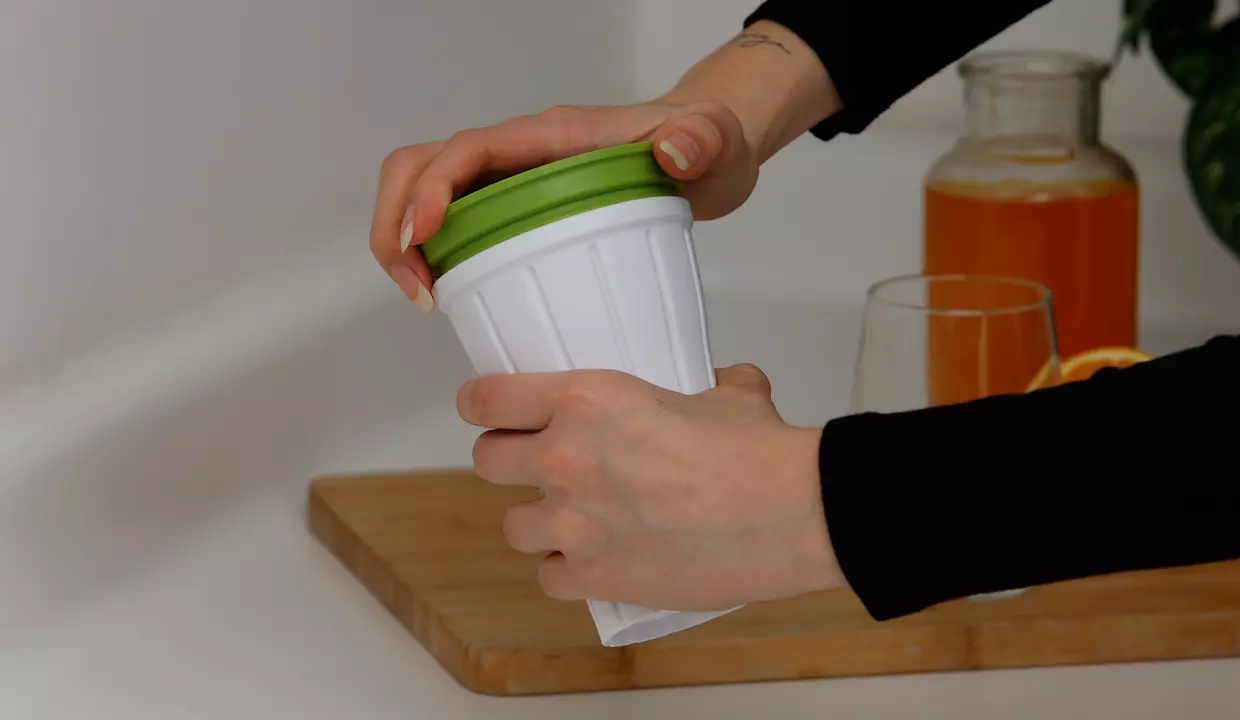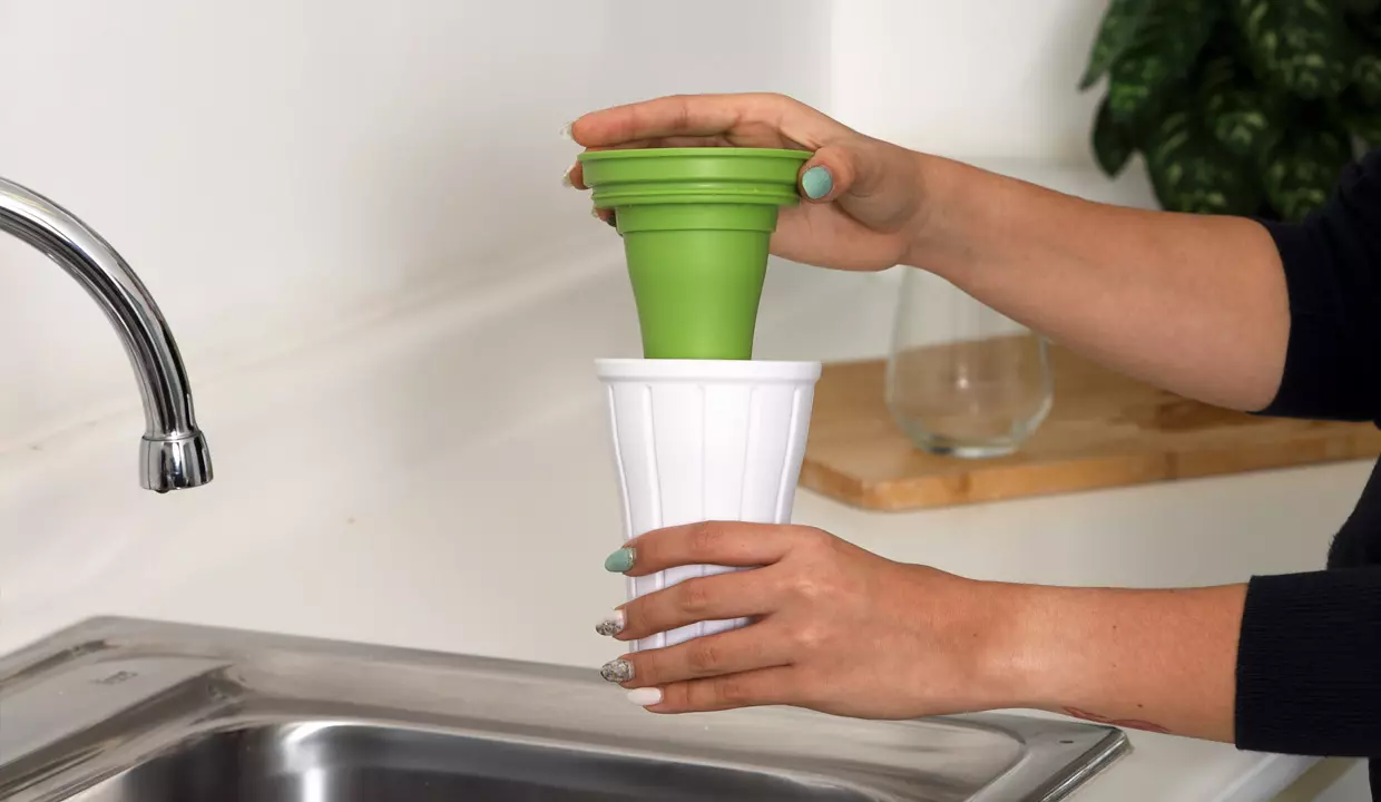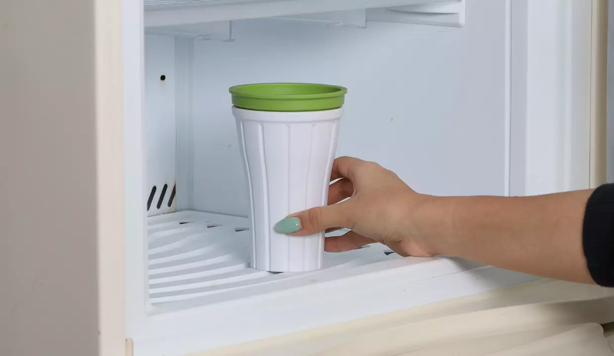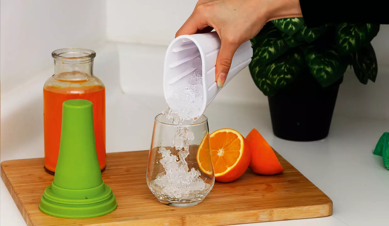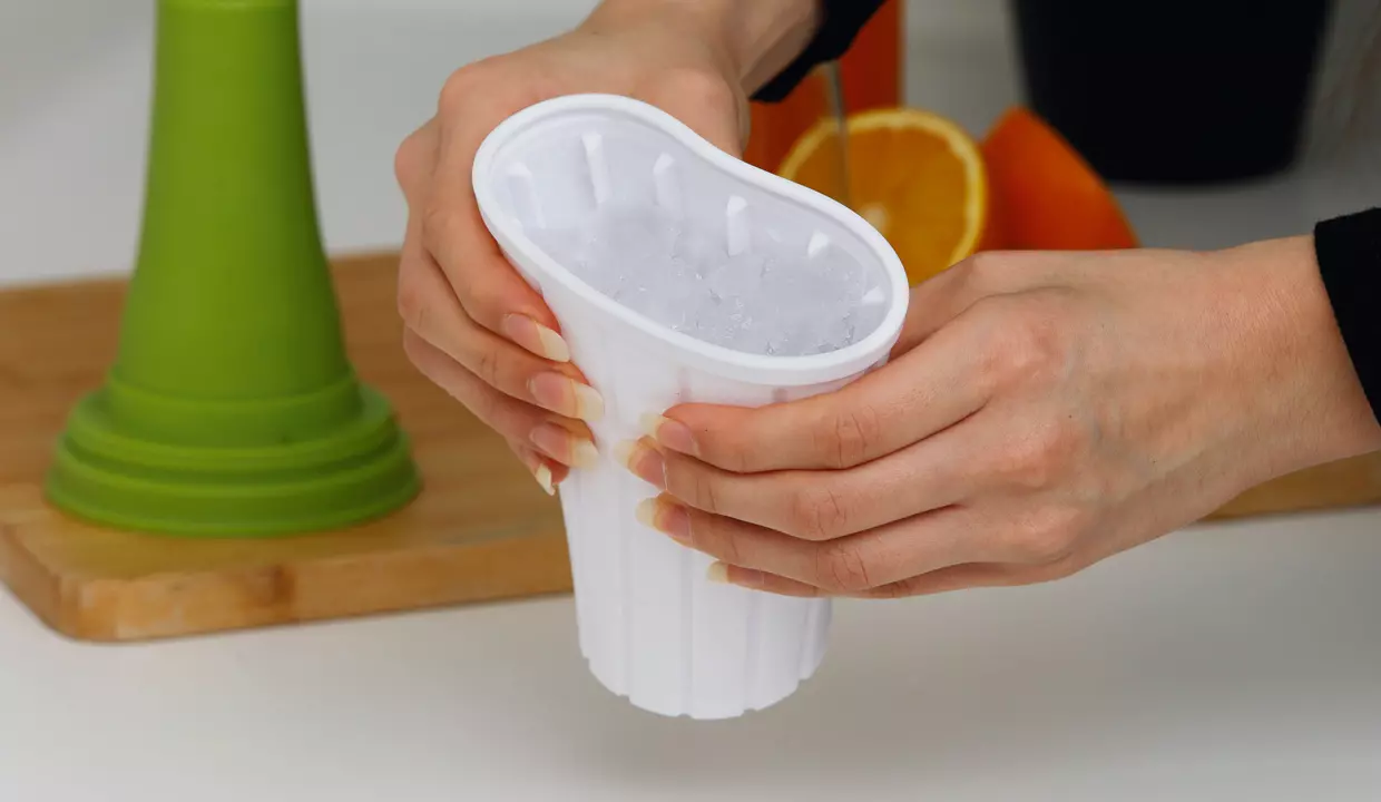 - 4- Una vez el hielo esté listo gire el molde verde para desmoldar.