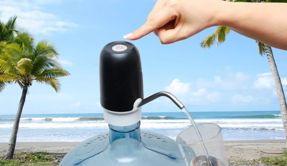 - 2- Coloque la manguera de silicón en la parte inferior del dispensador.