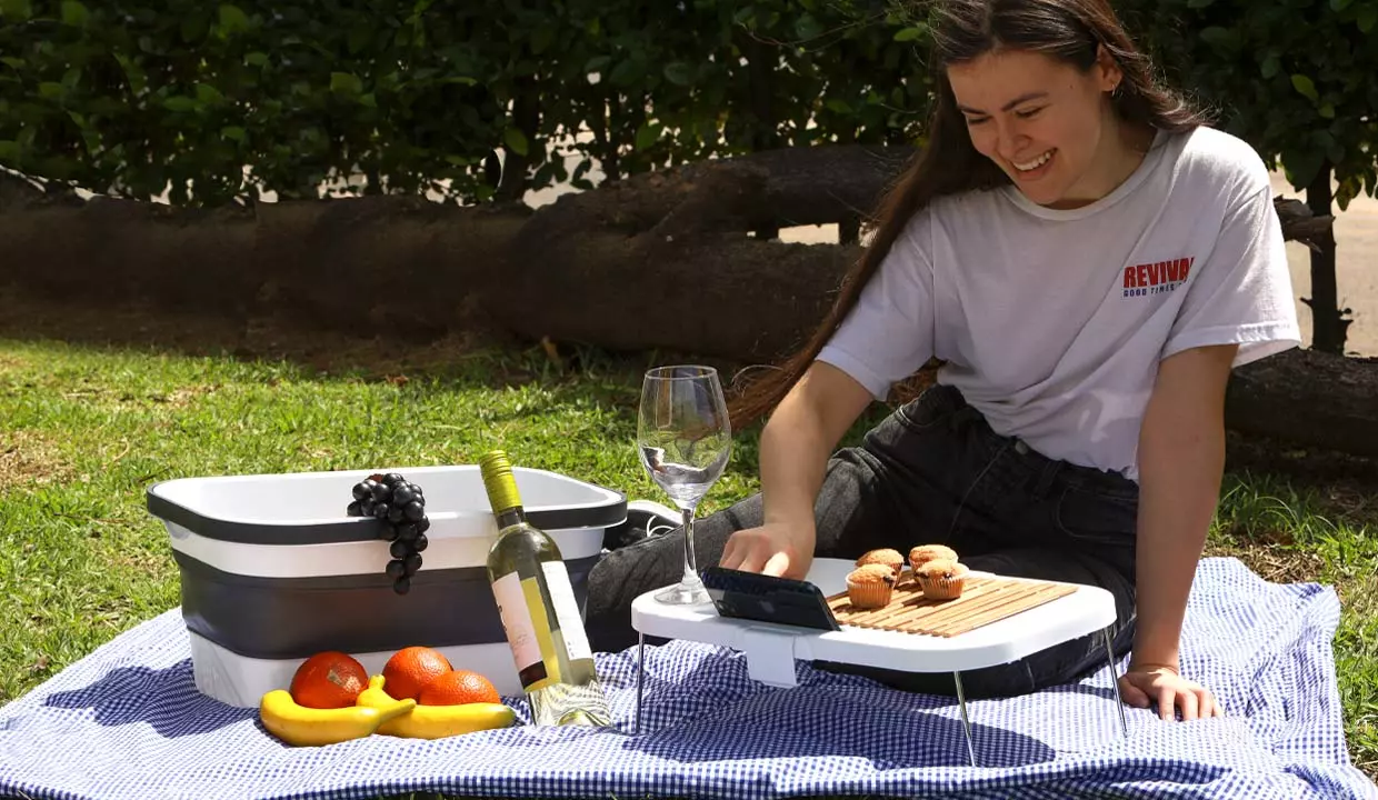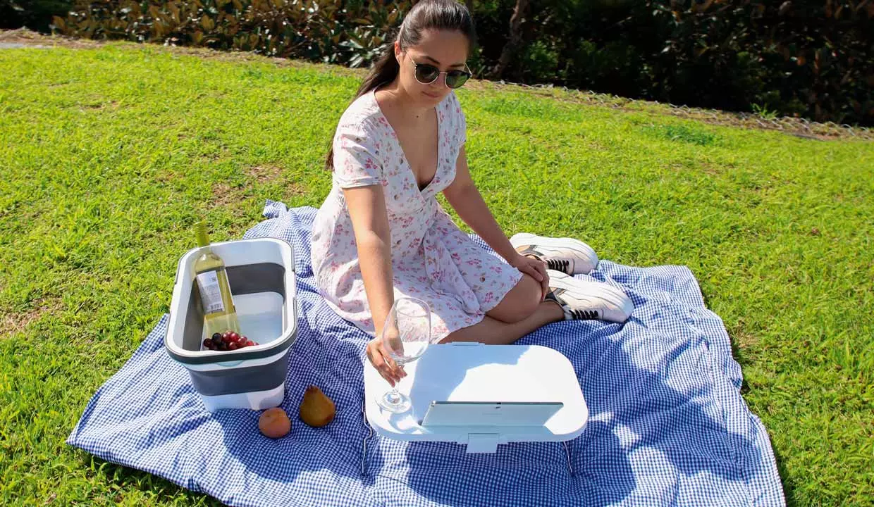 - Mesa plegable con portavasos.