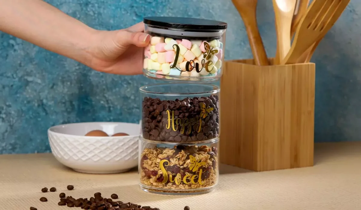 - 20 cm de alto apilados (cada recipiente de 7 cm de alto x 11 cm de diámetro).