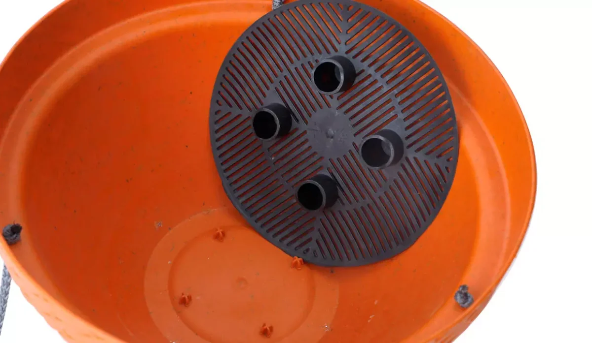 - Placa con orificios para drenar el agua.