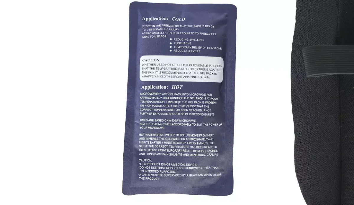 - Utilíce la compresa de gel removible en frío o en caliente.