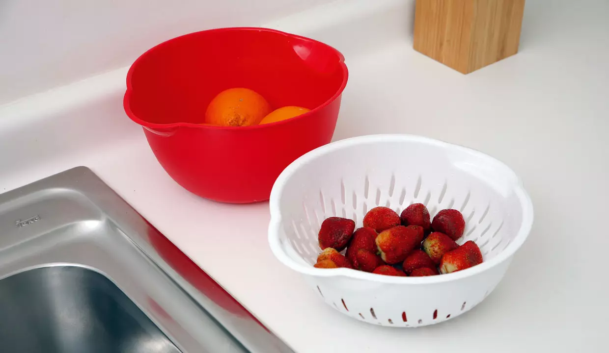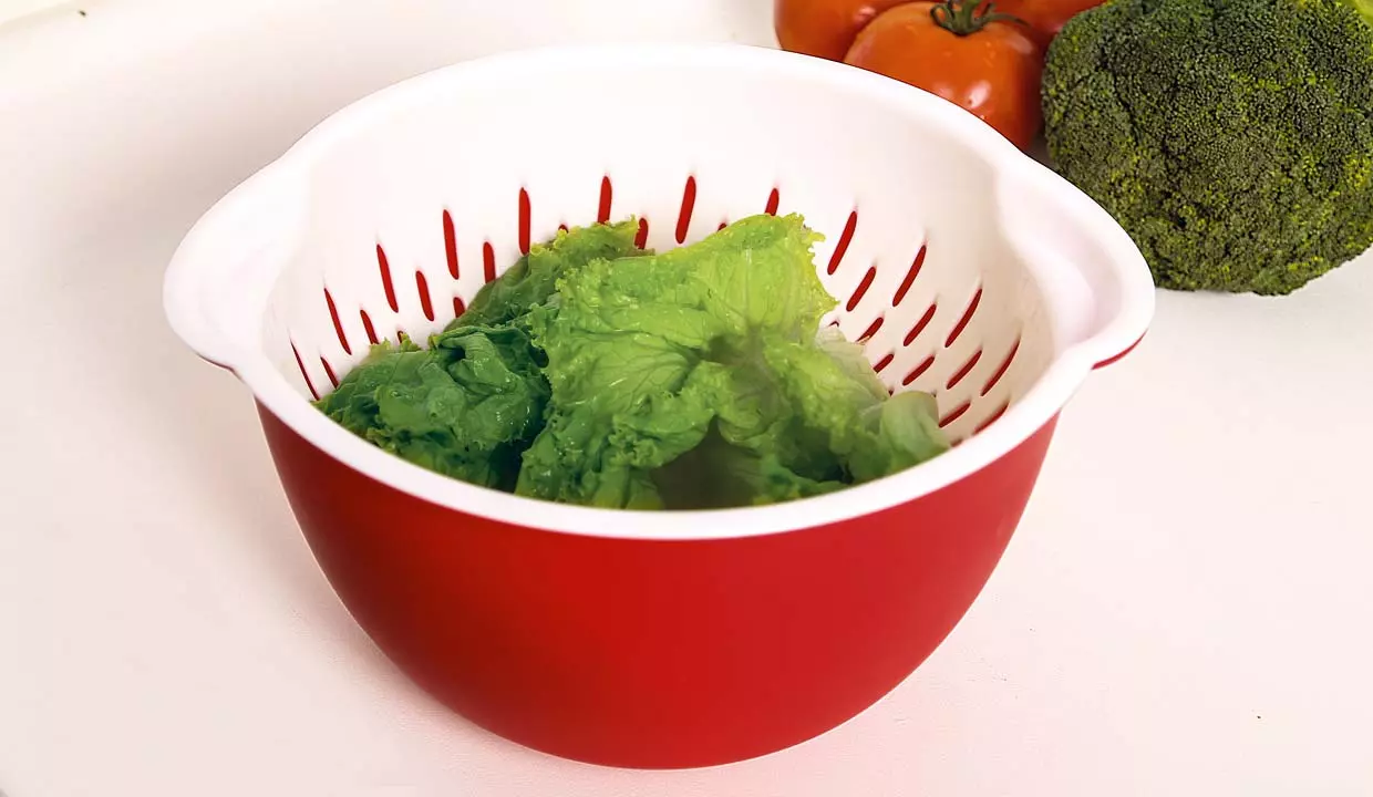 - 1 colador de 10 cm de alto x 23 cm de diámetro.