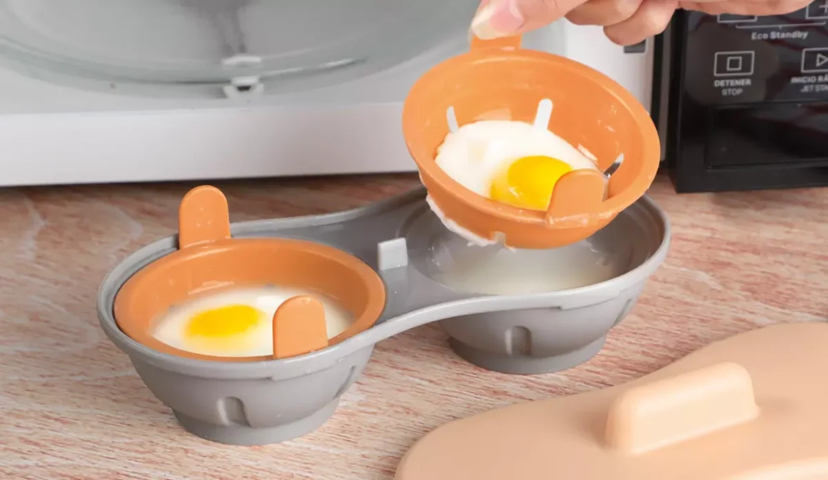 - 1- Coloque un poco de agua en el recipiente y luego agregue el huevo.